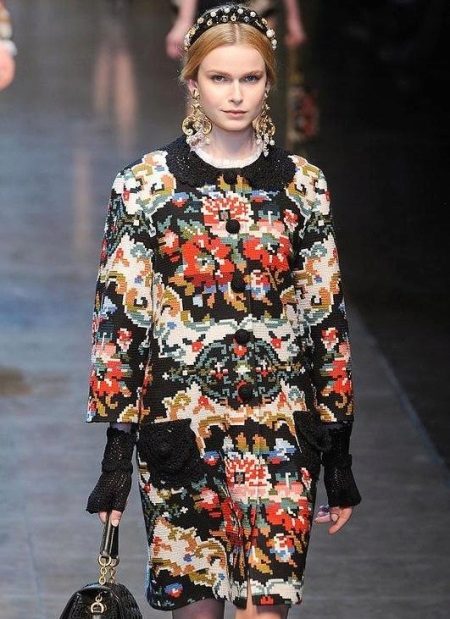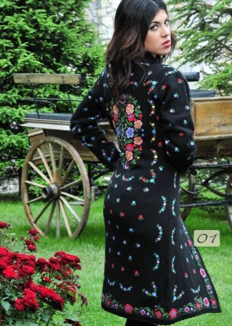 The main techniques of embroidery are smooth or cross. The choice of a suitable technique largely depends on the type of ornament and style in which the coat is made. For example, if the model is made in ethnic or folk style, then a cross-stitched pattern is best for its decoration.