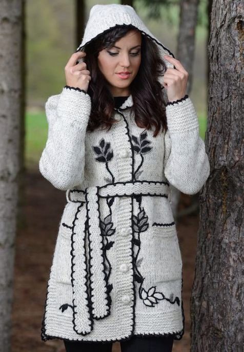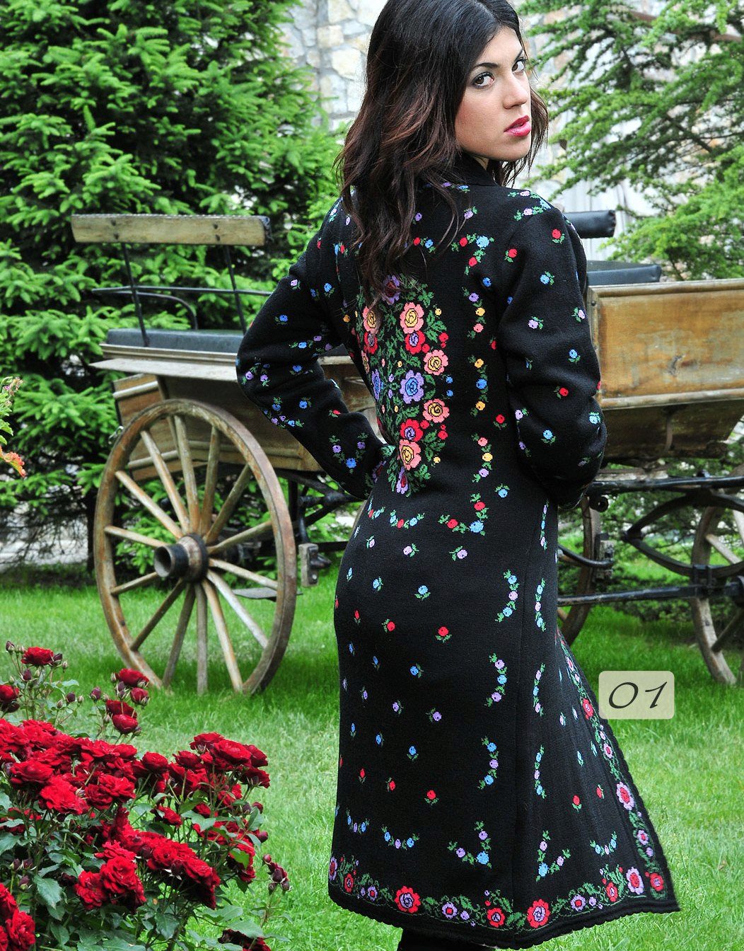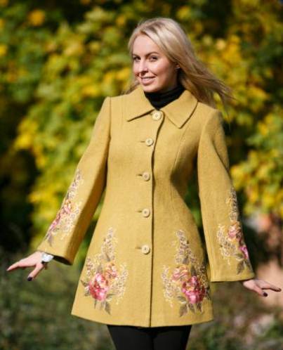 Flowers, leaves, intricate ornaments and ornate patterns are made of satin stitch. Sometimes several techniques are used at once when decorating one model.These coats look especially elegant and unique.