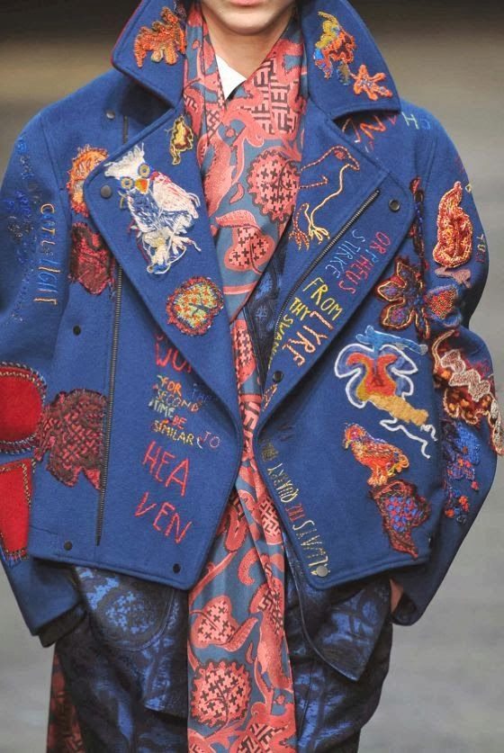 - Fantasy patterns, abstraction. The thin interlaced threads, original ornaments, unusual figures, embroidered on the coat, turn it into an extravagant, stylish thing.