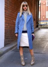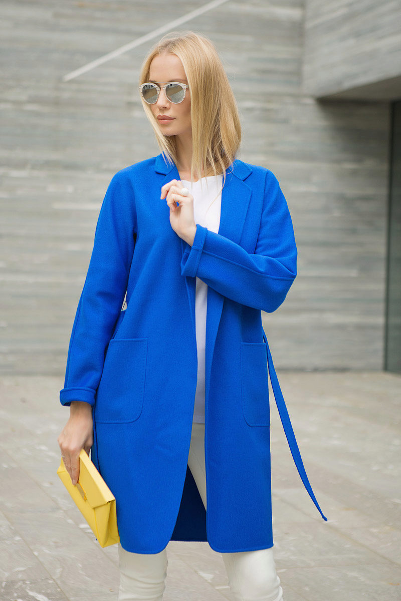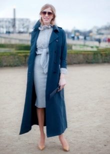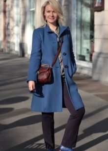 Coats of blue shades of classic cut of medium length look great with a pencil skirt, sheath dress or straight trousers with an arrow, the ideal pair of shoes for this ensemble are high-heeled shoes.