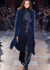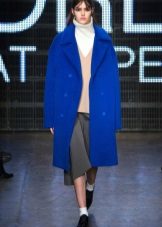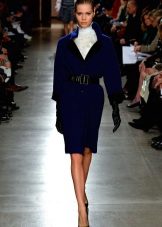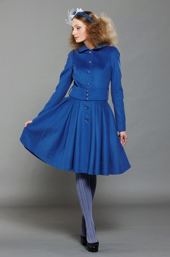 Youth hit - a pleated coat or a coat-dress in a blue shade. The bottom of these models resembles a flared skirt or sun skirt. Their length is usually just above the knees. These styles look great with fur collars. Moreover, fur can also be blue, but in a slightly different shade than the coat itself.