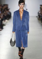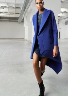 In the current season, fashion designers present the broadest selection of coats of blue flowers of various styles using mainly the following materials: wool, cashmere, drape, tweed, boucle, angora, leather, suede, denim ...