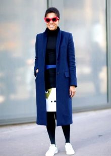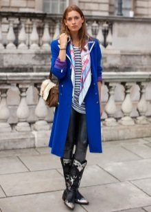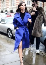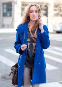 When choosing a blue coat of the required length, consider what items of your wardrobe do you plan to wear with it: