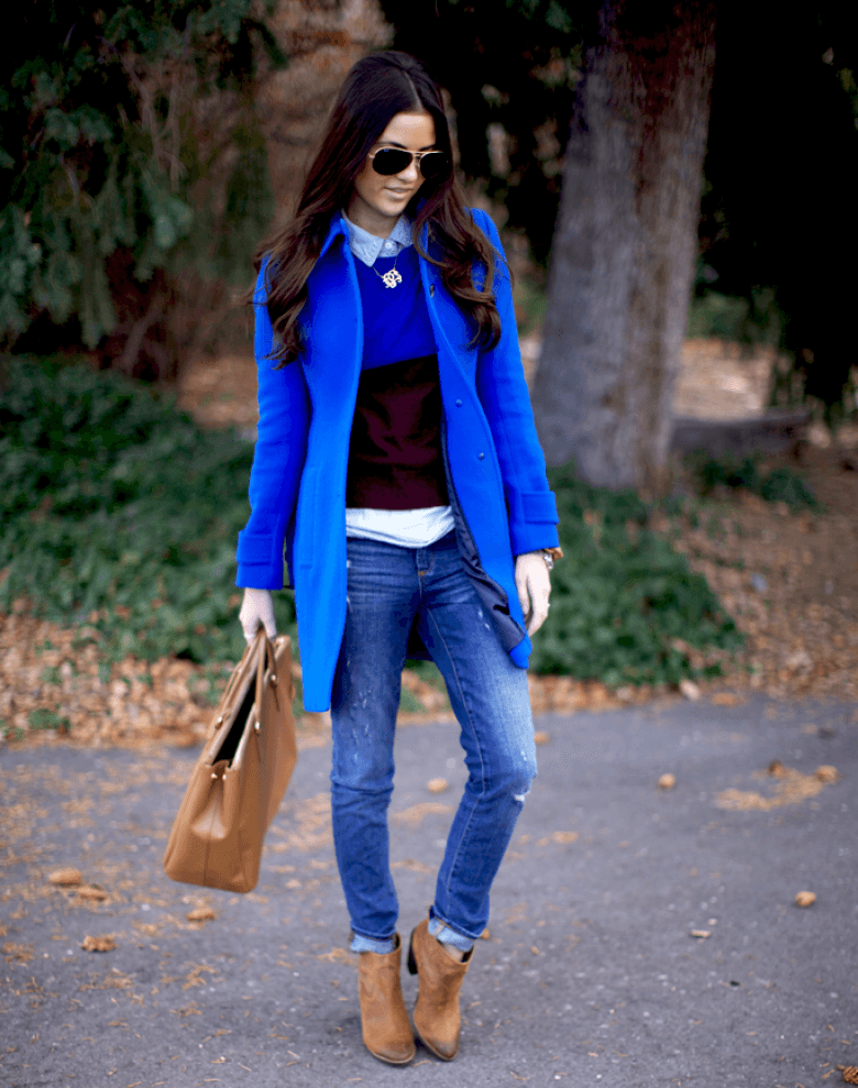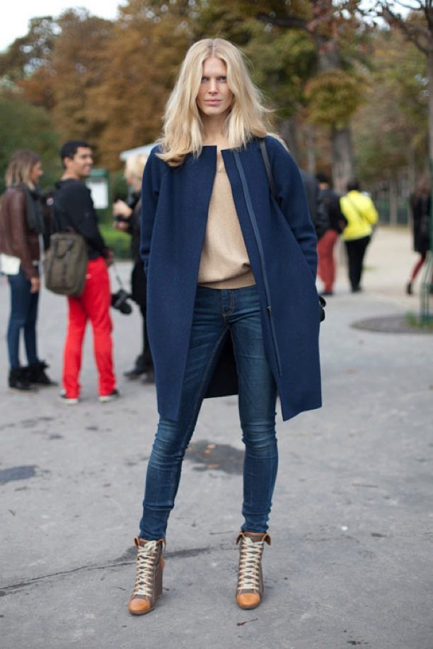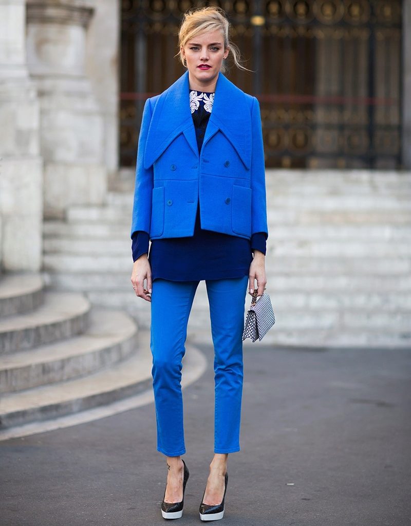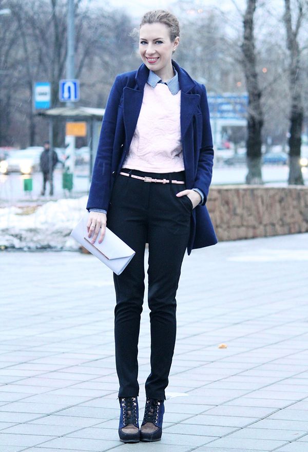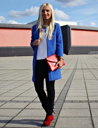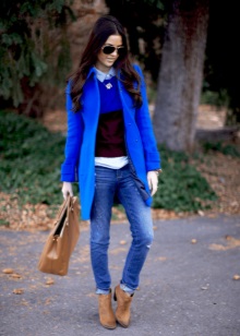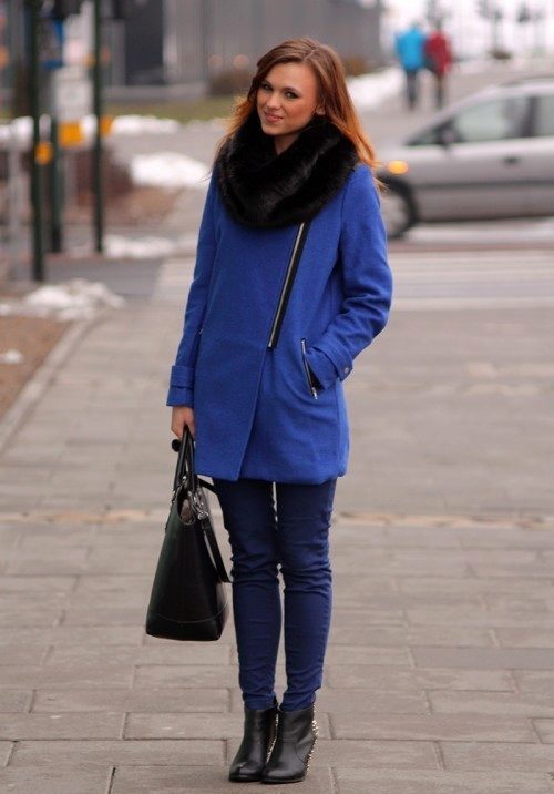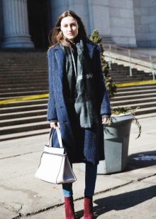 But do not forget that it is your blue coat that will set the basic tone in the created image, there should be few accessories, and no more than three used colors in the ensemble.