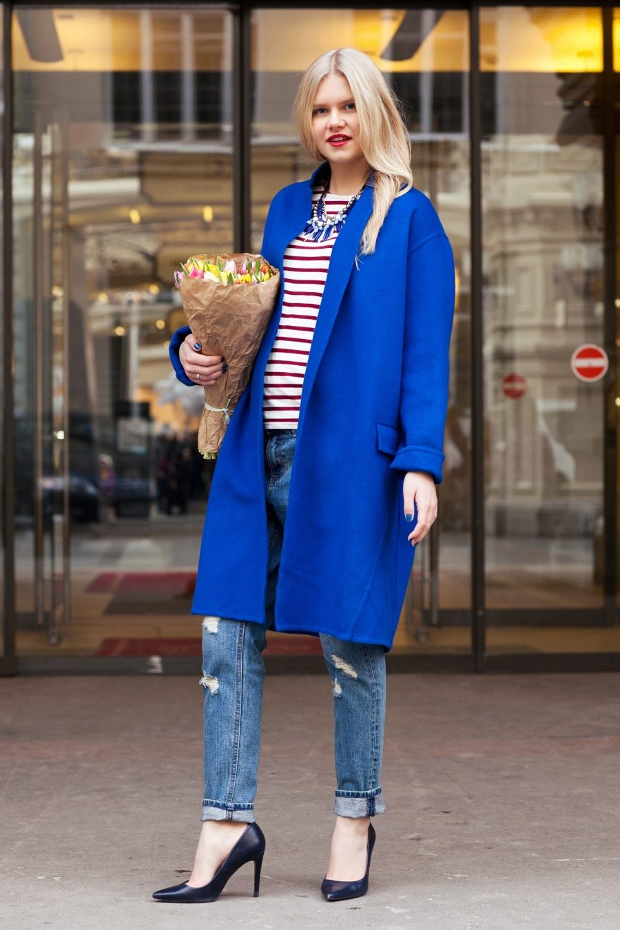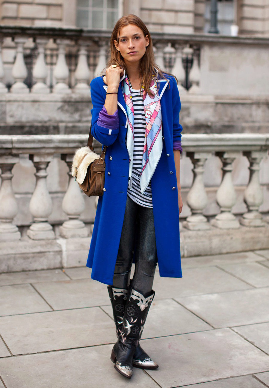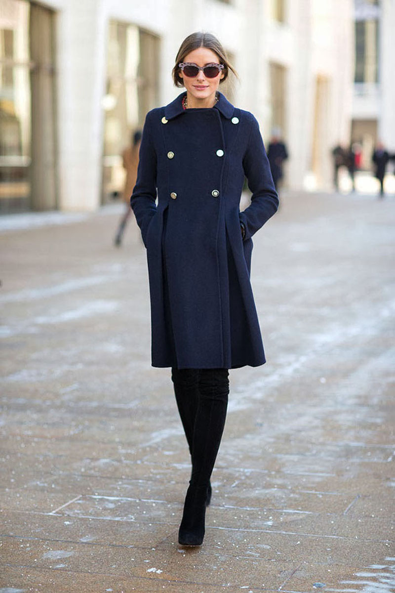But do not forget that it is your blue coat that will set the basic tone in the created image, there should be few accessories, and no more than three used colors in the ensemble.