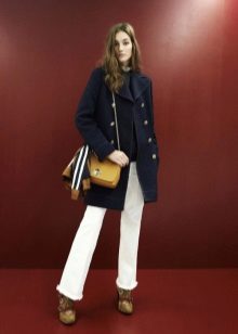 In addition to the traditional classic single-breasted and double-breasted blue coats in English style, approximately up to the knee, eminent trading houses represent cropped unisex coats such as coat coats, trench coats, duffle coat and pea coats. The collar of such models, as a rule, turn-down or stand.