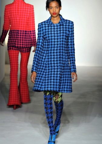 No less popular print goose foot - a traditional pattern of the British aristocracy. As a rule, this is a small black drawing on a dark blue background. In addition, the pattern of lines and stripes, both direct and abstract, is relevant to the coat of blue tones.
