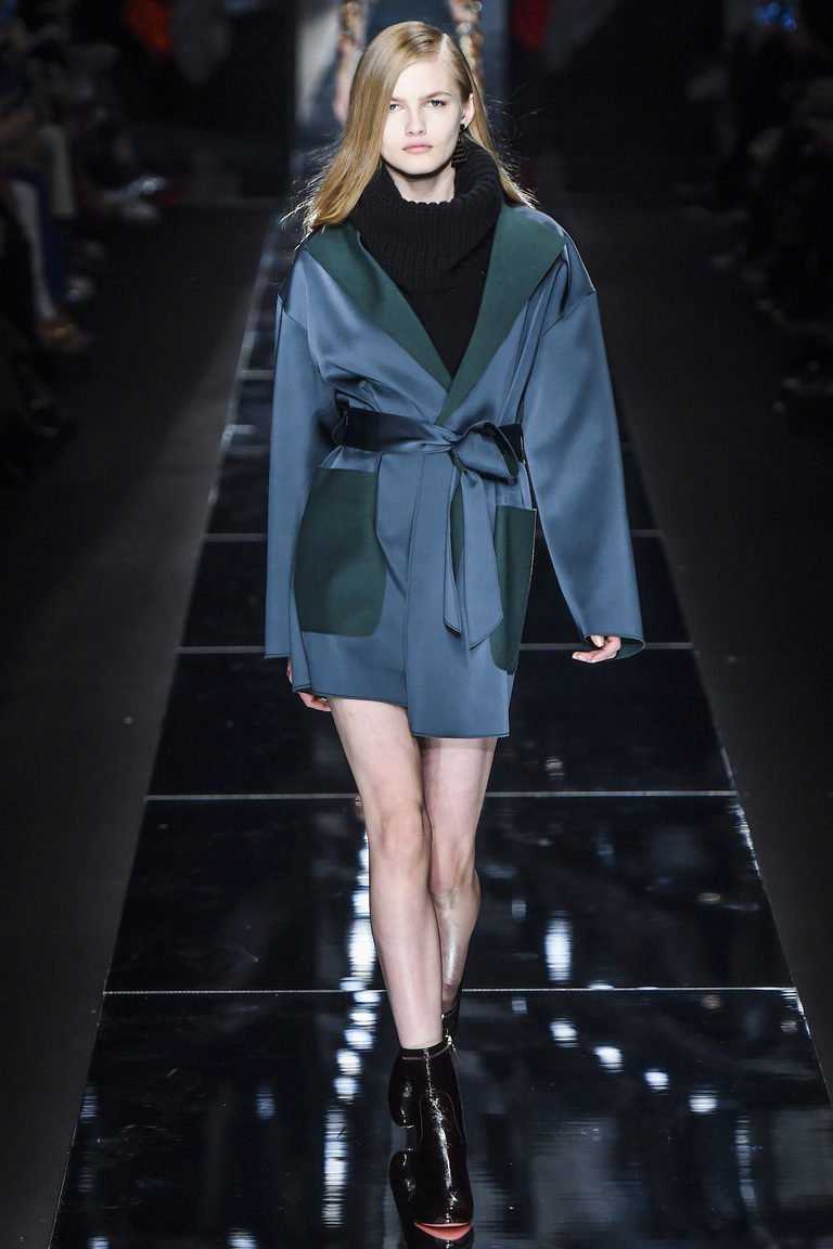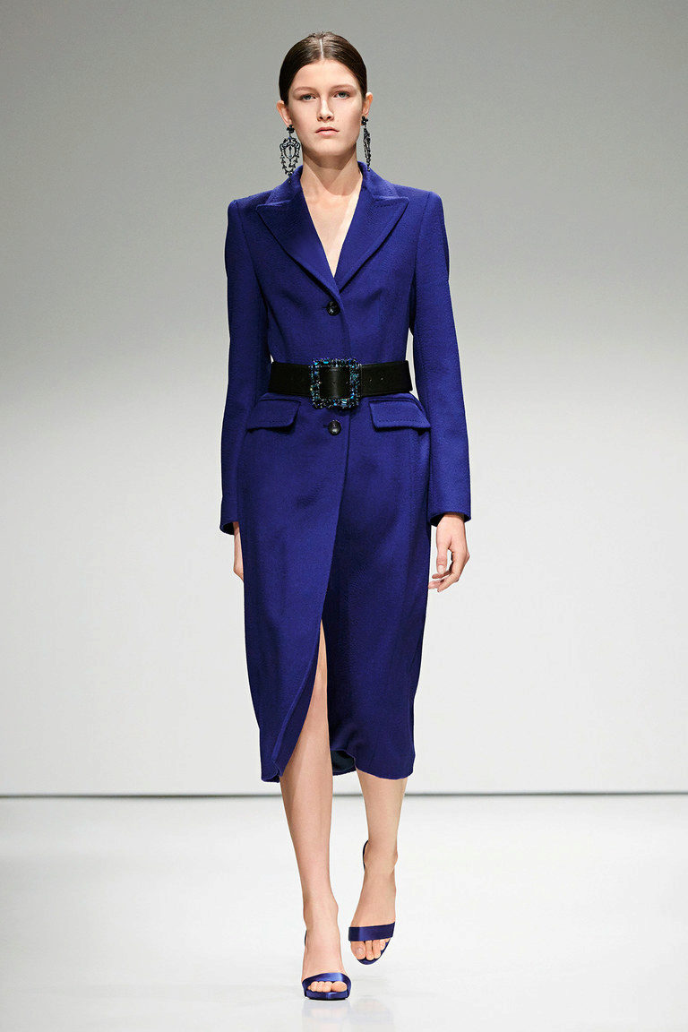 The sixties-inspired vintage-inspired coats of the blue palette below the knee are often presented without buttons, with a wide belt or belt.