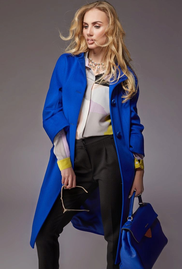 This coat is able to visually slim, blue color is both dark and fair-haired young ladies. The deep and noble tones of a dark blue coat look great on brown-haired women and brunettes, and blondes can safely be recommended in a coat of rich, bright blue hues.