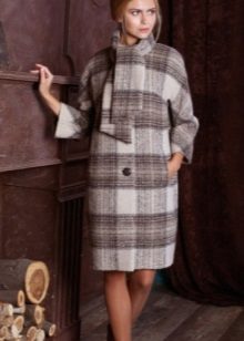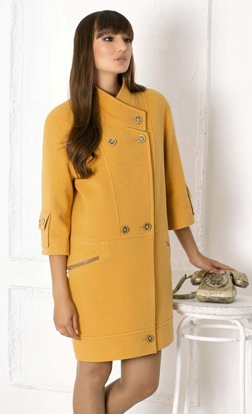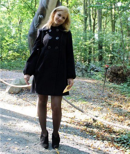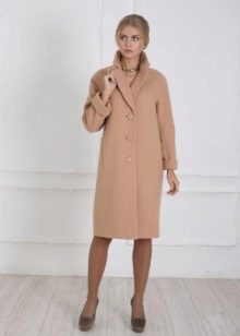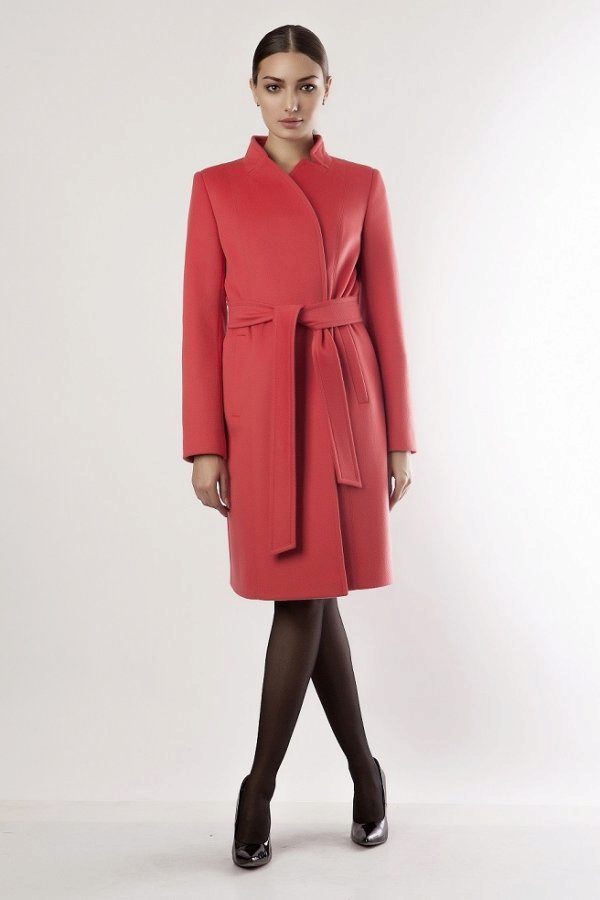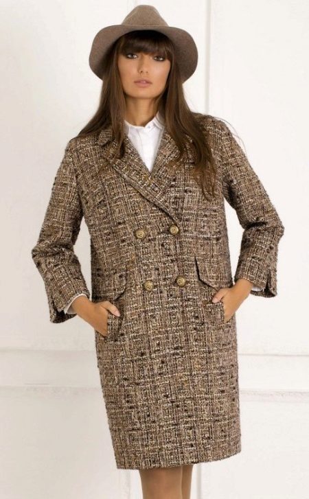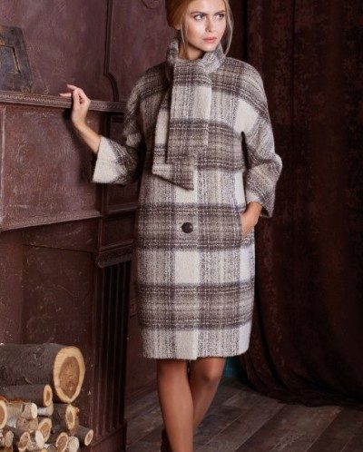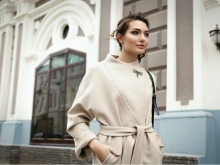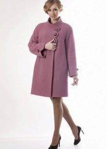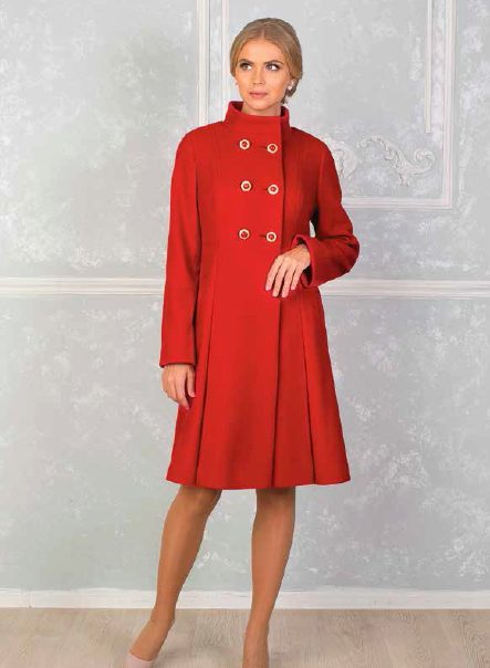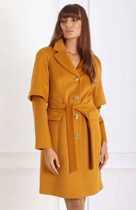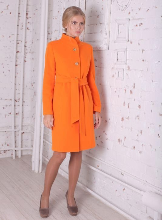 Today the most popular model is a trapezoid-shaped coat with an average knee-length. They may be with a small stand-up collar or without it. The peculiarity of this product lies in the shortened sleeve, so in cold weather it is recommended to complement the image with long gloves.