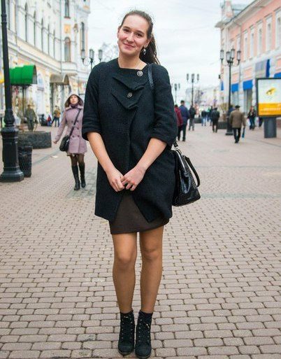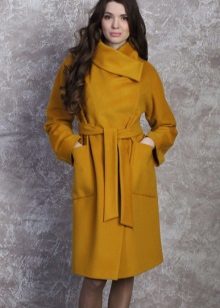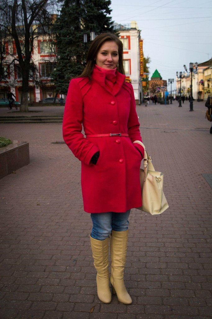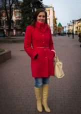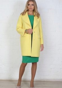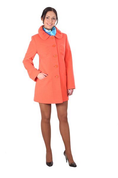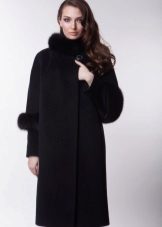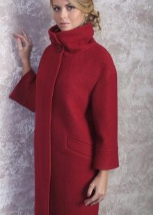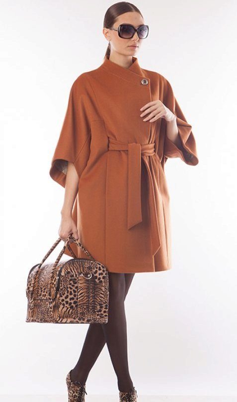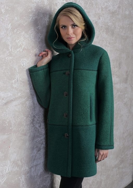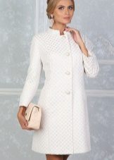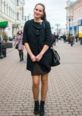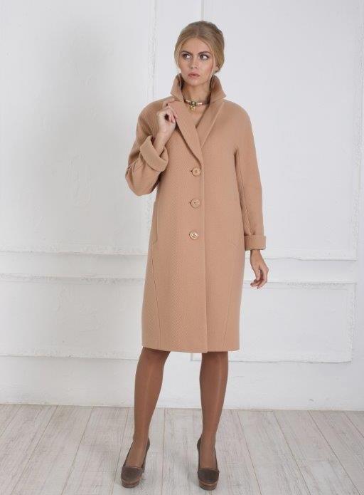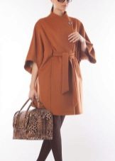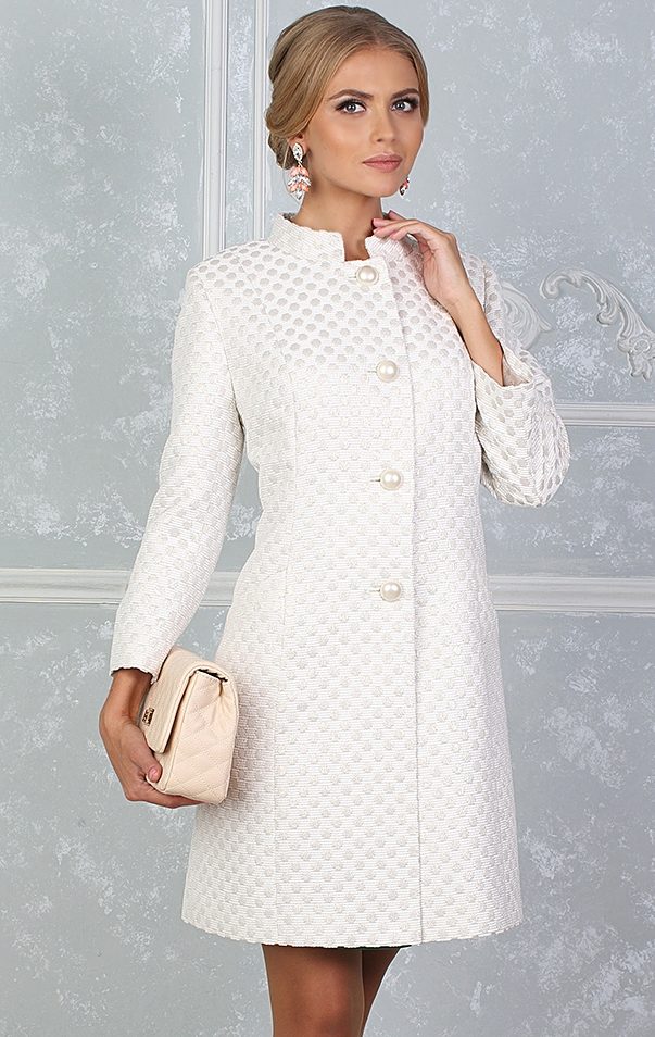 Today the most popular model is a trapezoid-shaped coat with an average knee-length. They may be with a small stand-up collar or without it. The peculiarity of this product lies in the shortened sleeve, so in cold weather it is recommended to complement the image with long gloves.