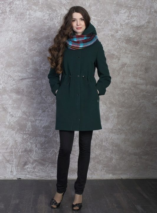 Among young people, models with a hood and a thin belt, which can be both winter and demi-season, are most in demand. It goes well with not only jeans, but also with a skirt. As an accessory, use a bright wide scarf.