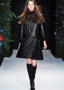 - A spectacular leather fitted coat with a curly quilting of the most popular medium length, with a flared bottom, in a winning light will present a cocktail dress worn under it and shoes or pumps or stiletto boots.