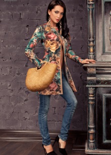 - A short jacket can be perfectly combined with any denim clothing. You can choose a skirt of different lengths and styles (straight or flared, from mini to maxi) or jeans. Add the appropriate shoes (ankle boots for a short skirt or high boots for mini, sneakers or sneakers for jeans). Depending on the choice, you will create a playful, piquant or sporty image. An excellent addition will be a long knitted scarf.