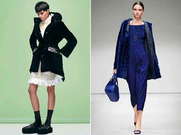 Saturated deep colors so different in style, but equally interesting in style decision quilted coats from Fendi and Escada.