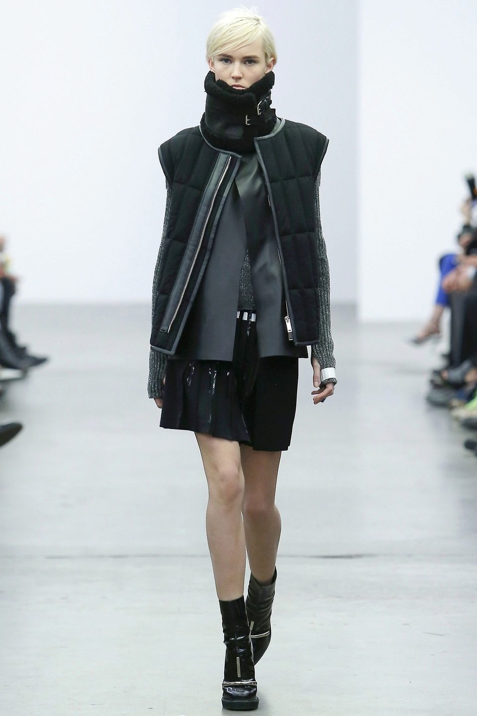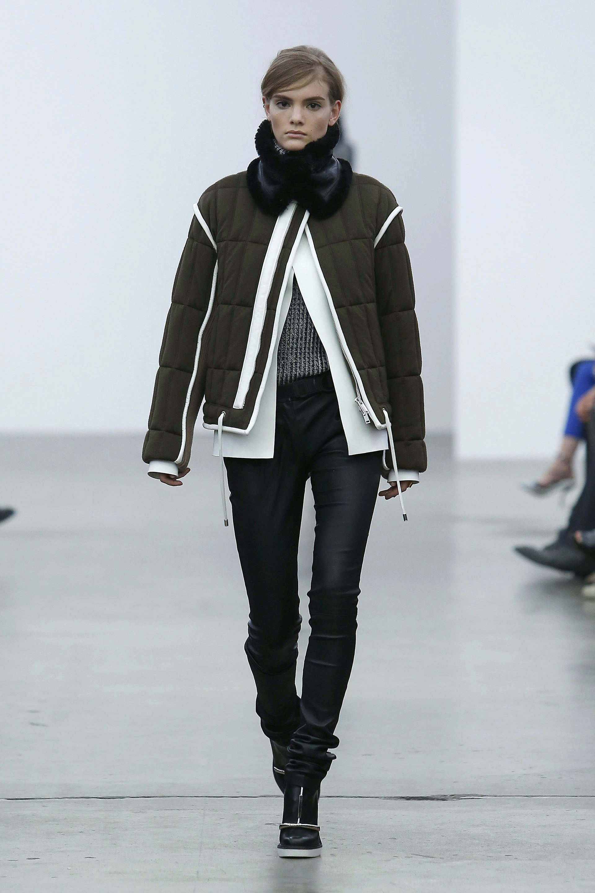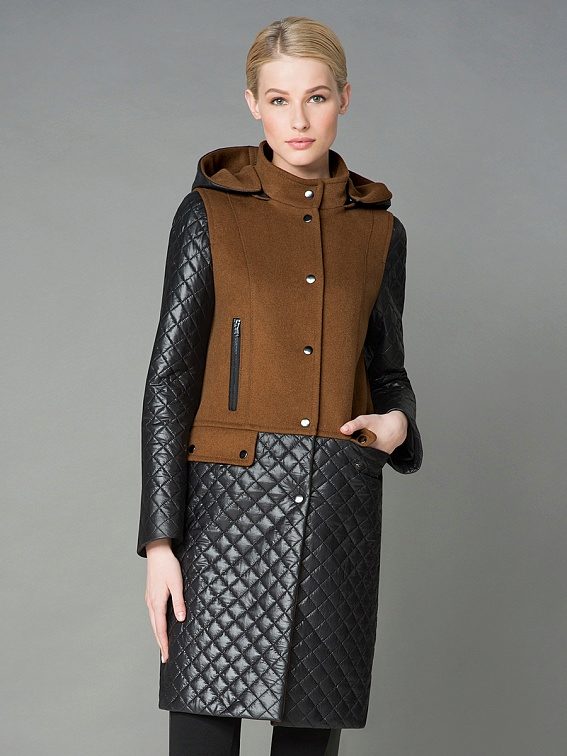 - Combined version of two or more types of fabric (quilted and non-quilted) with leather, suede, tweed, drape, knitwear inserts - for example, a quilted leather coat with knitted sleeves.