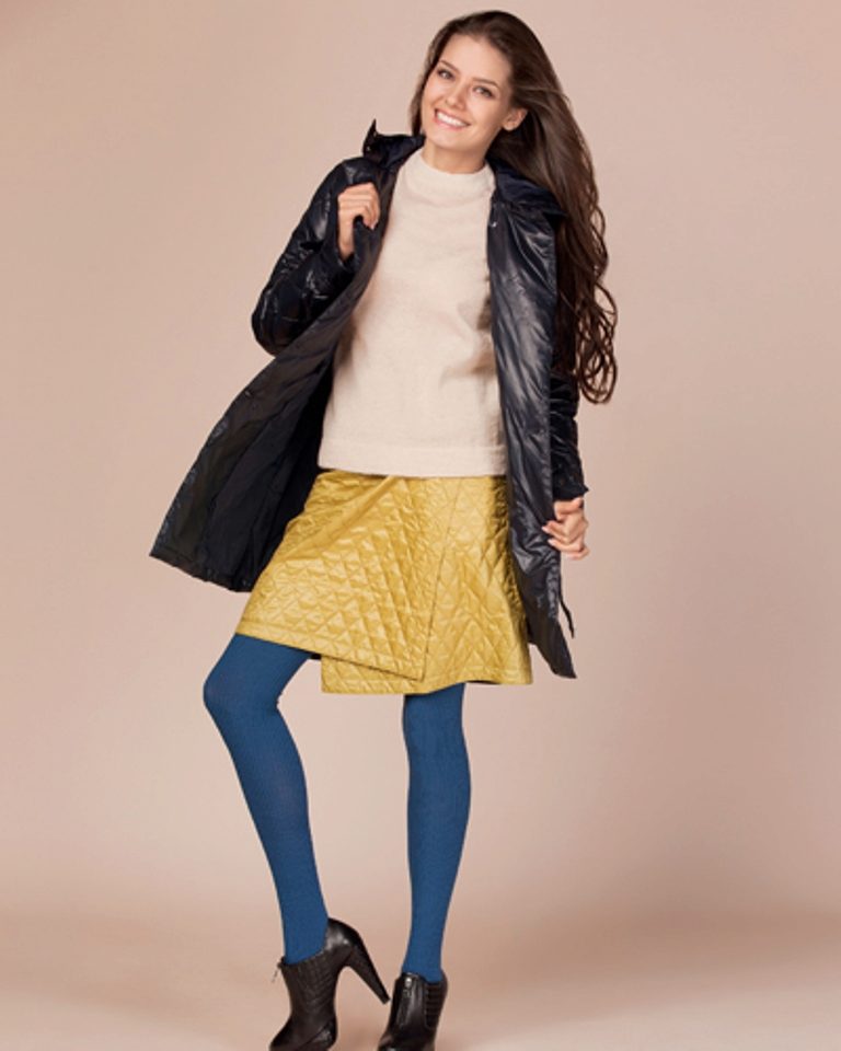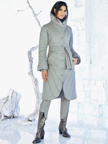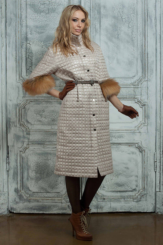 The color range of quilted coats provides an extensive field for creative ideas of fashion designers: red, yellow, turquoise, purple, green, dark orange and of course, the classics - white, black, gray, beige. This season various combinations of shades of the same tone or different colors are in fashion. The quilted coat of the color silver or metallic gold also looks impressive.