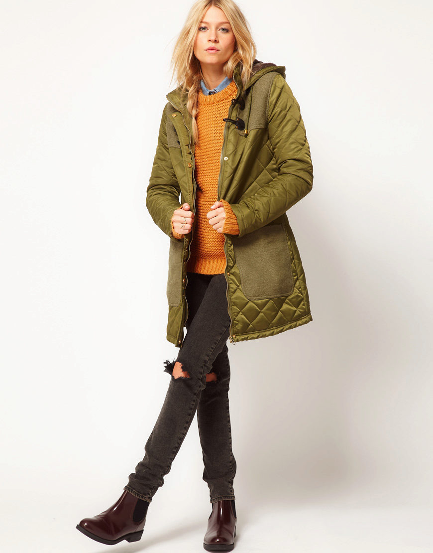 Distinctive features of a modern quilted coat are: