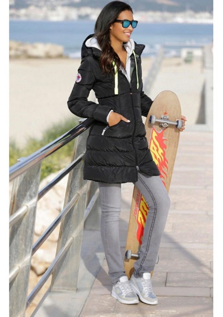 - coat with a hood - a model with a sports accent for girls and women leading an active lifestyle;