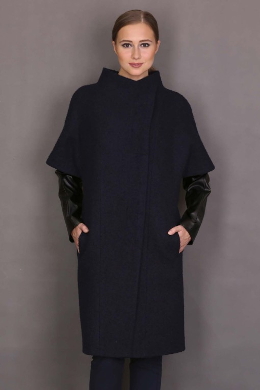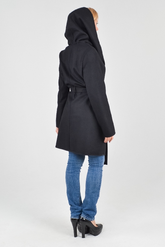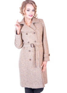 There are no fasteners in this model. Their function is performed by a wide and very comfortable belt that comes with it. The material from which this coat is made consists of 80% natural wool and 20% polyester.