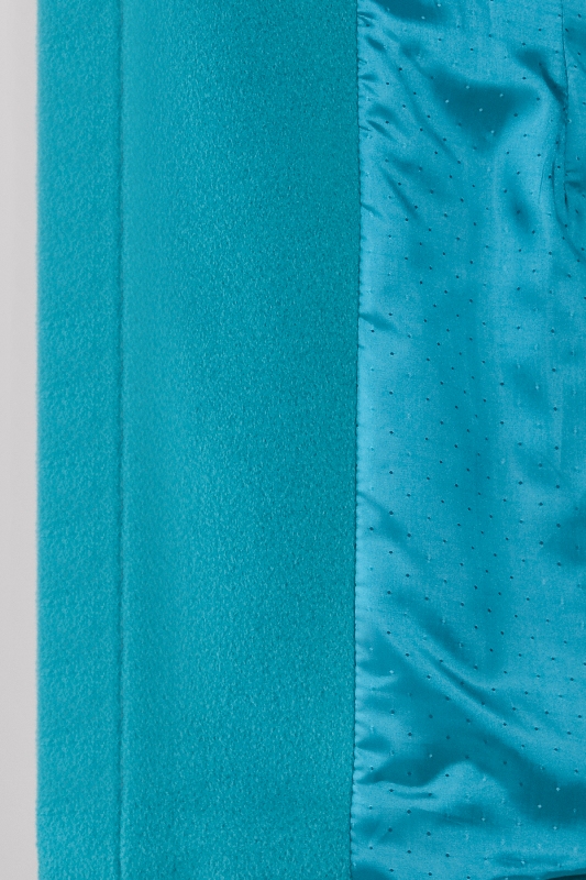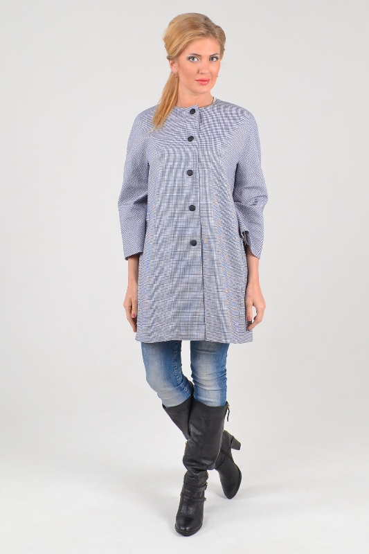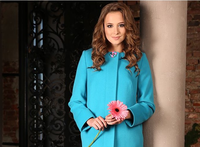This year such gentle shades of blue as turquoise and blue are gaining popularity. One of the current models of this company is made in this color. An exquisite coat has a lowered line of the shoulder, because of which the model becomes less official, but at the same time looks refined. Classic straight cut is extremely versatile and will perfectly highlight many women's bows.