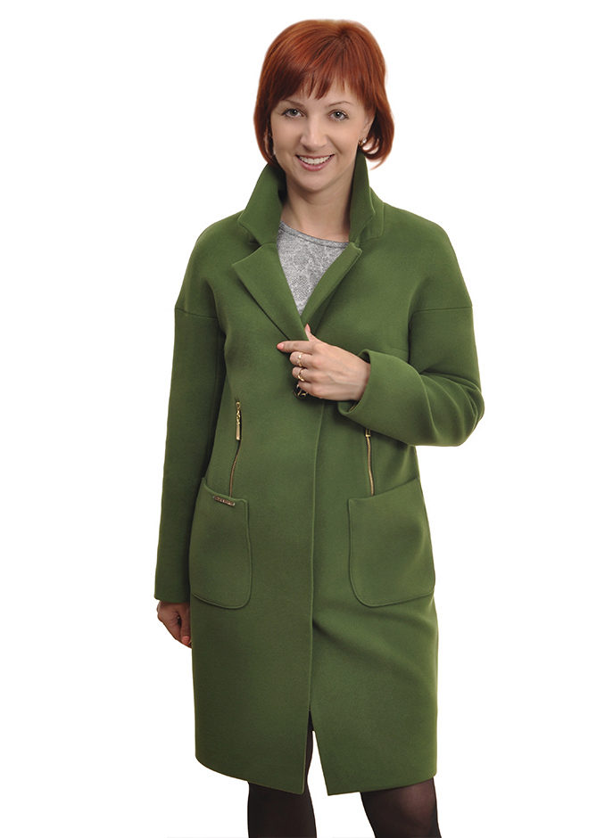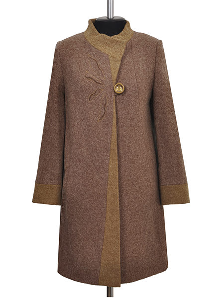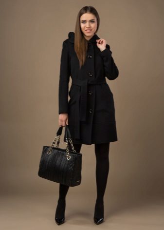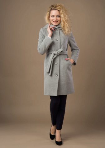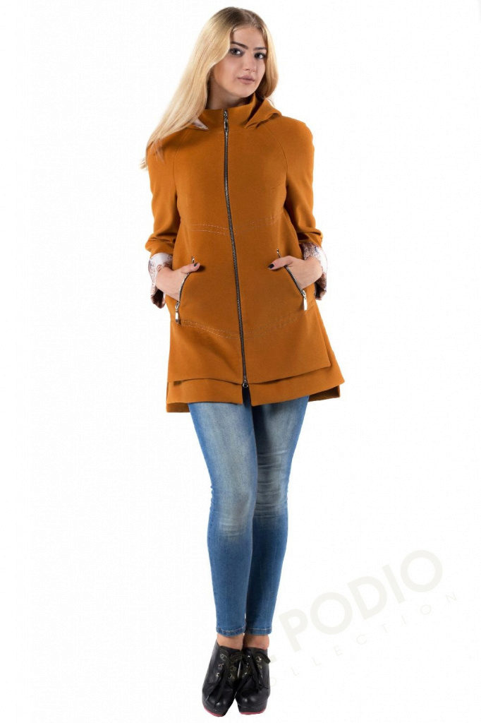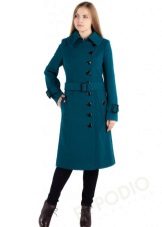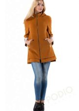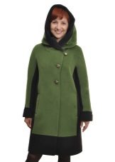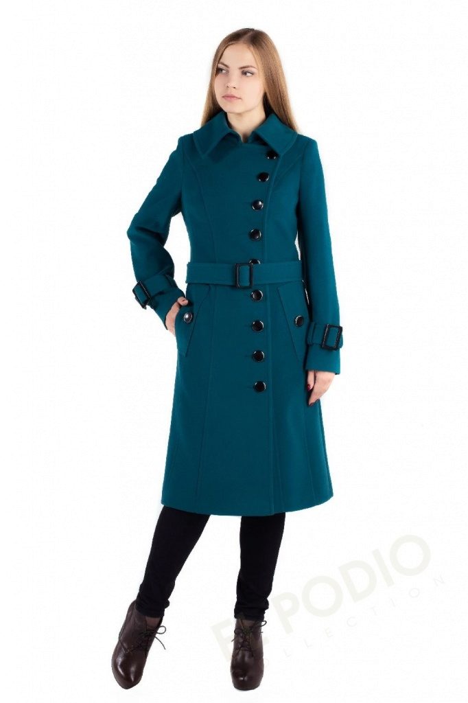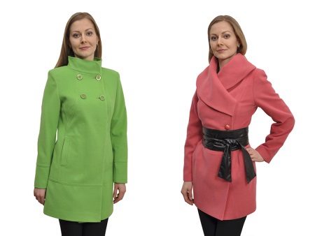 - feminine coats of medium length in figure with tucks in the lower part, providing a large fold and decorated with decorative elements;