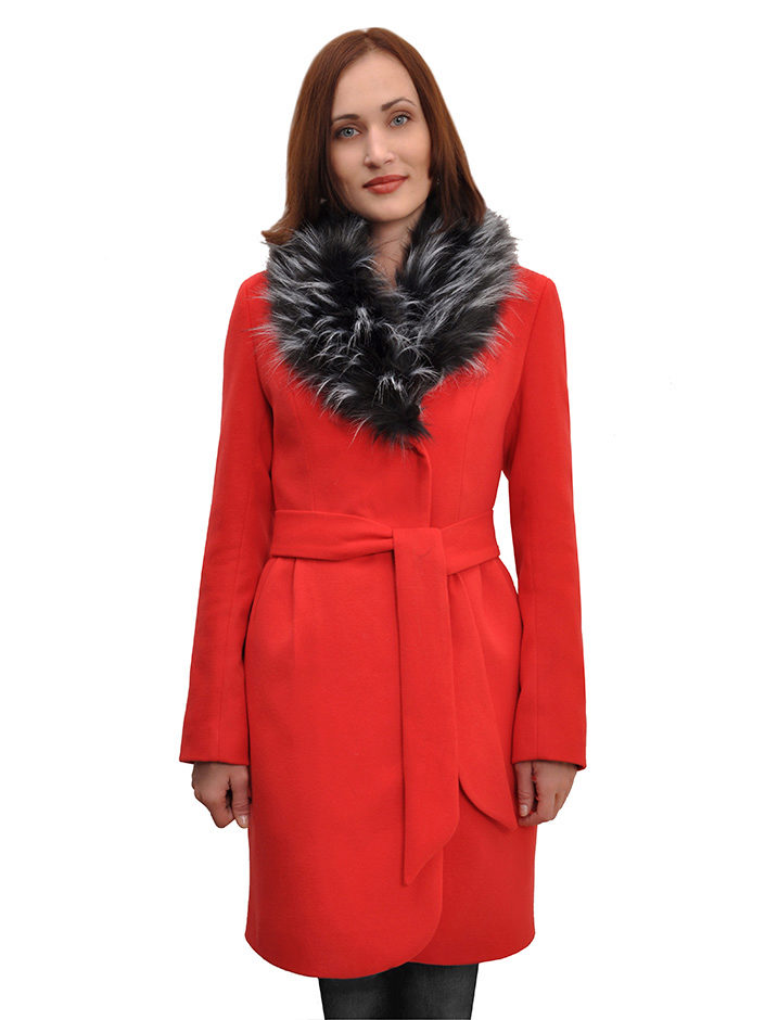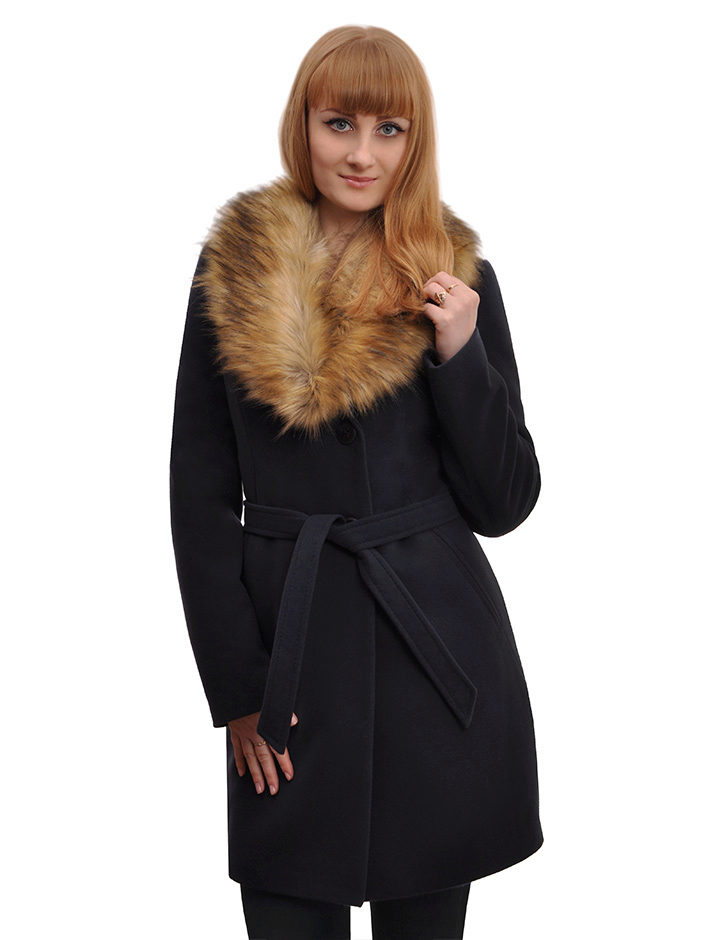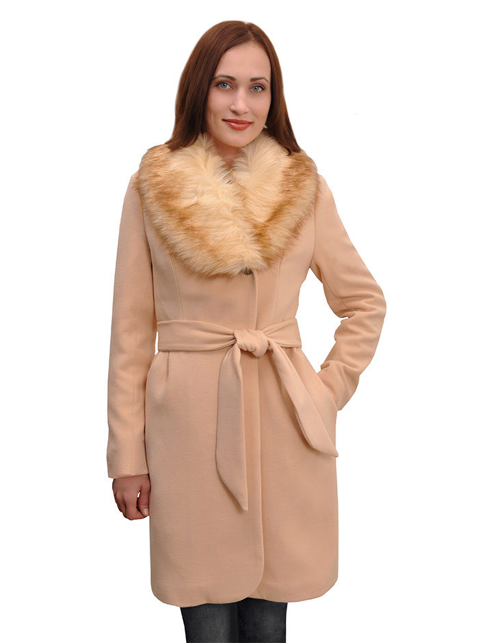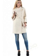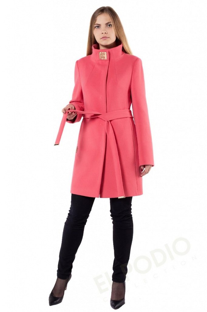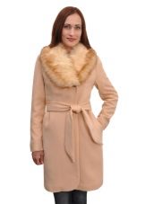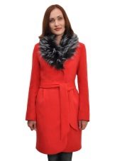 - bright coats to mid-thigh with a rounded hemline, on a wide belt, with a trendy element of this season - a removable fluffy faux fur collar.