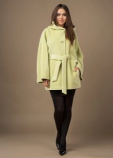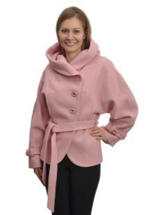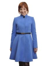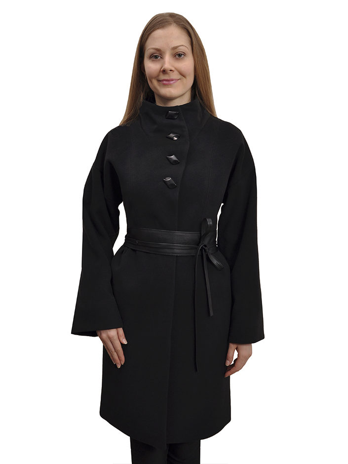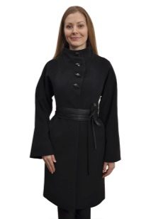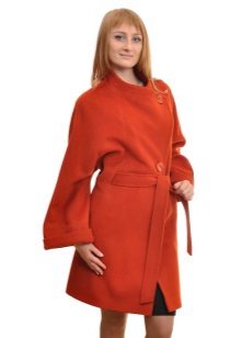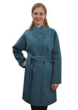 - coat in a romantic style, without a collar, on a wide knotted leather belt, with a flared skirt or tulip skirt, with sleeves widening downwards;