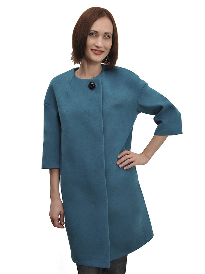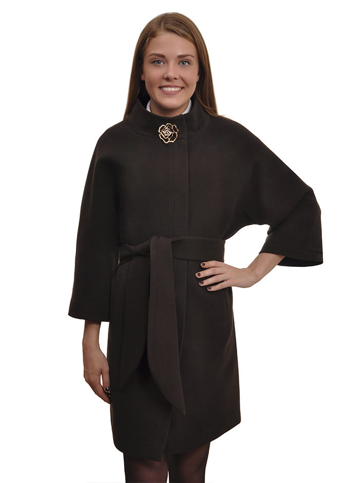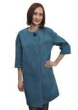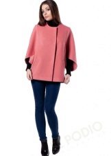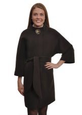 - coat with sleeves "bat", decorative large stitching along the edges of the shelves and at the waist, with a secret fastener and a large button-brooch in the upper part of the shelf;