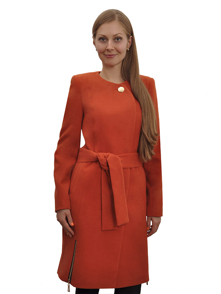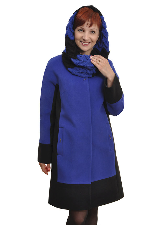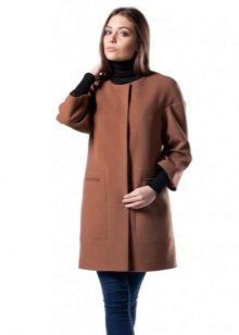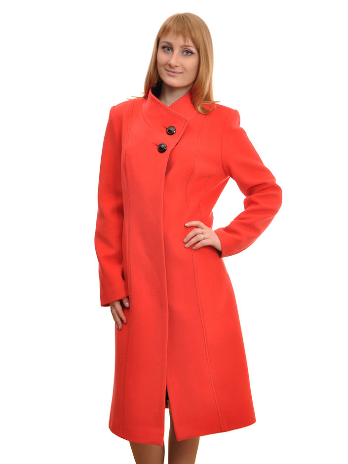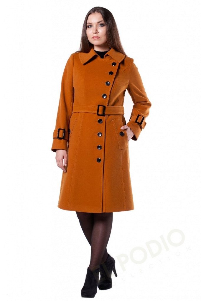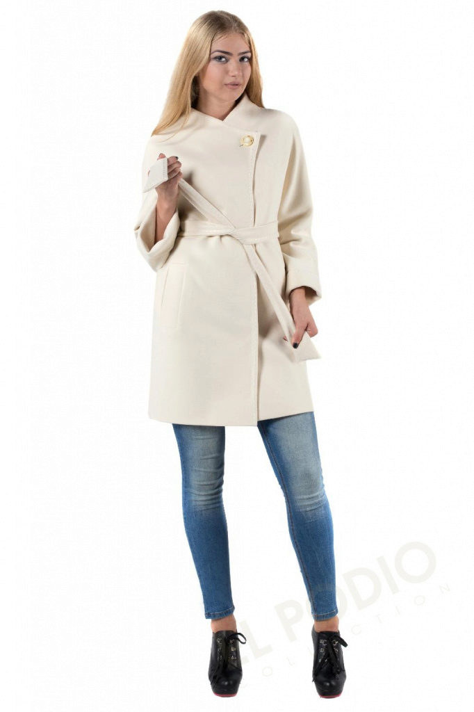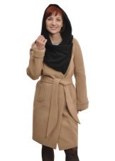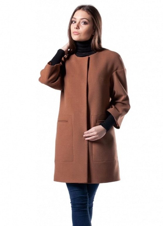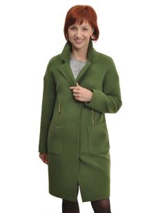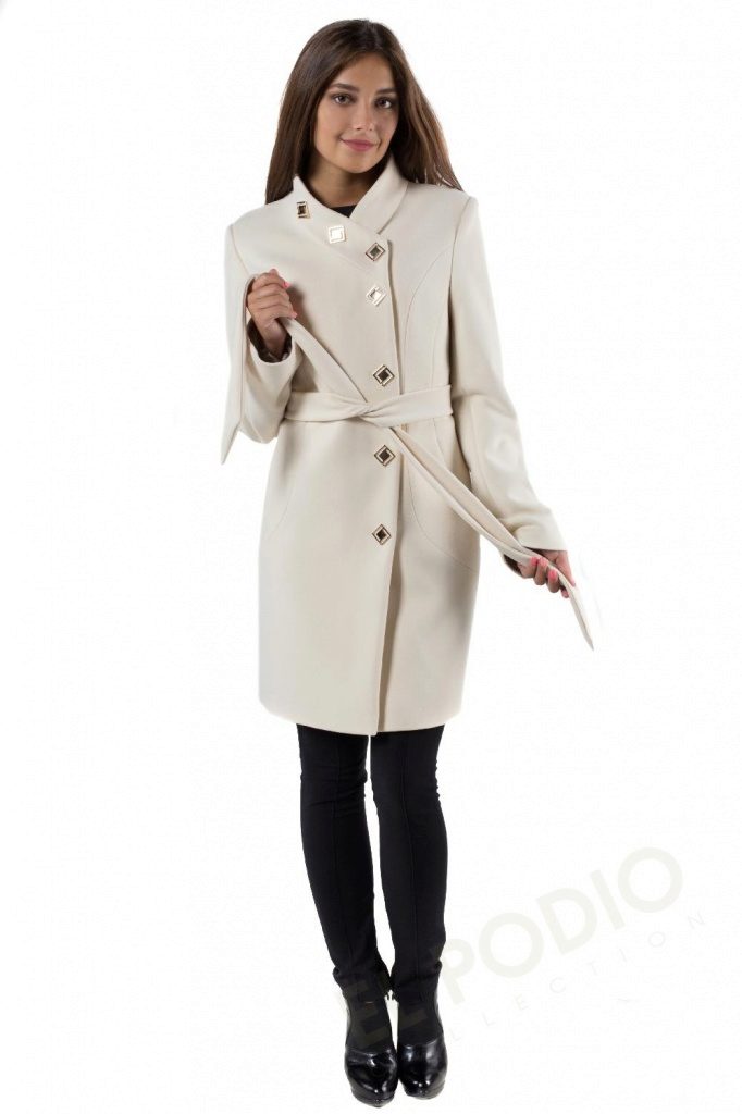 - elegant coats of direct cut with an original collar-scarf, which fits around the neck, a high collar or a collar-collar;