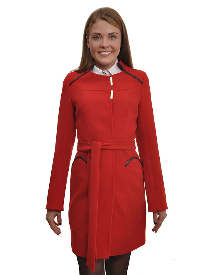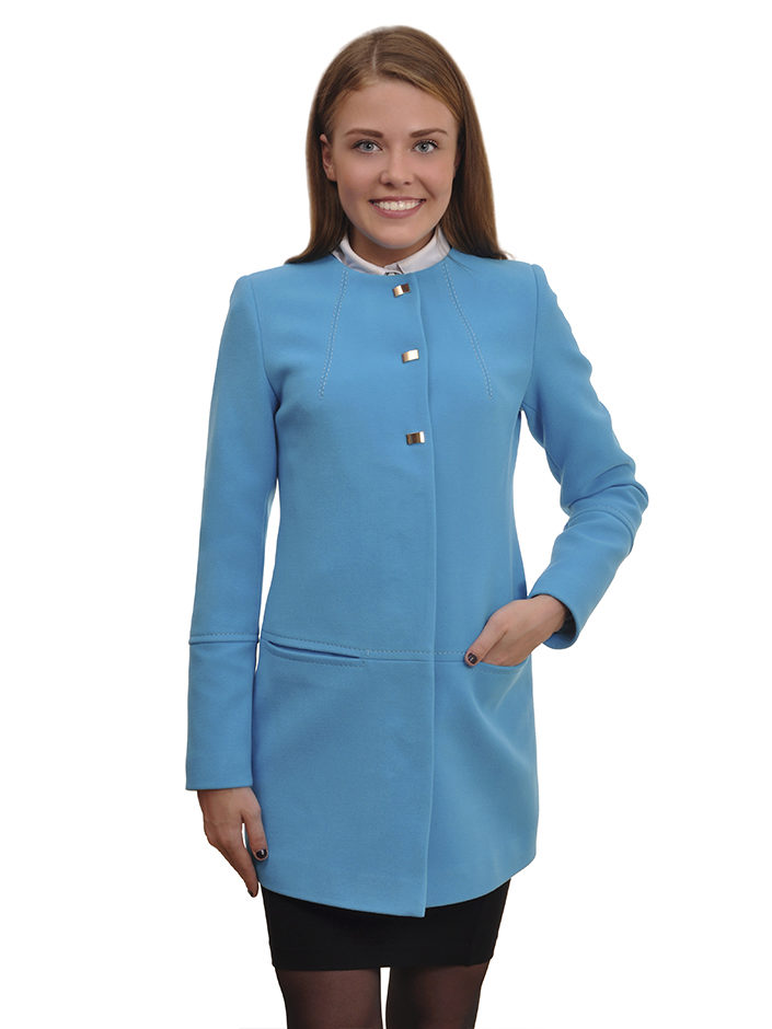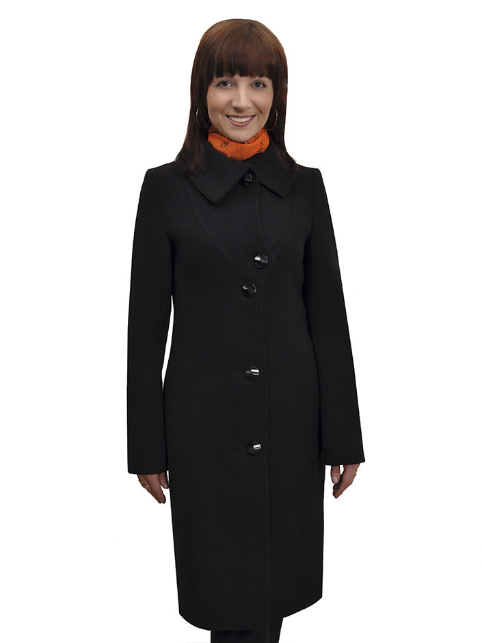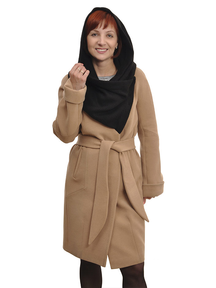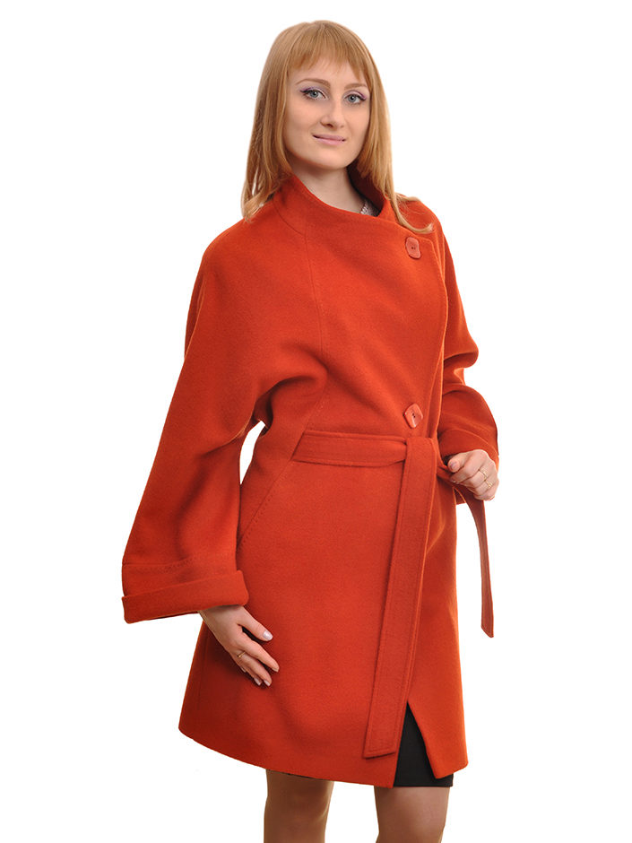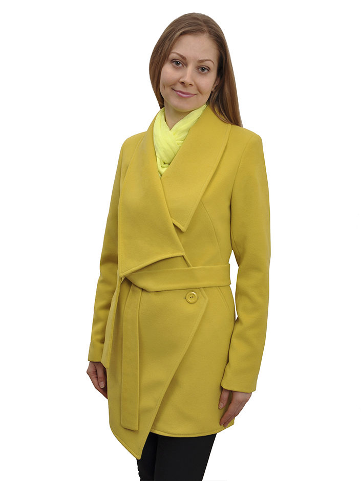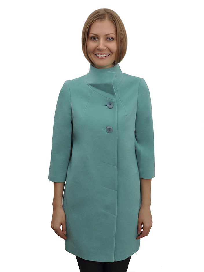 - elegant coats of direct cut with an original collar-scarf, which fits around the neck, a high collar or a collar-collar;