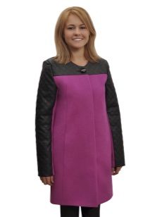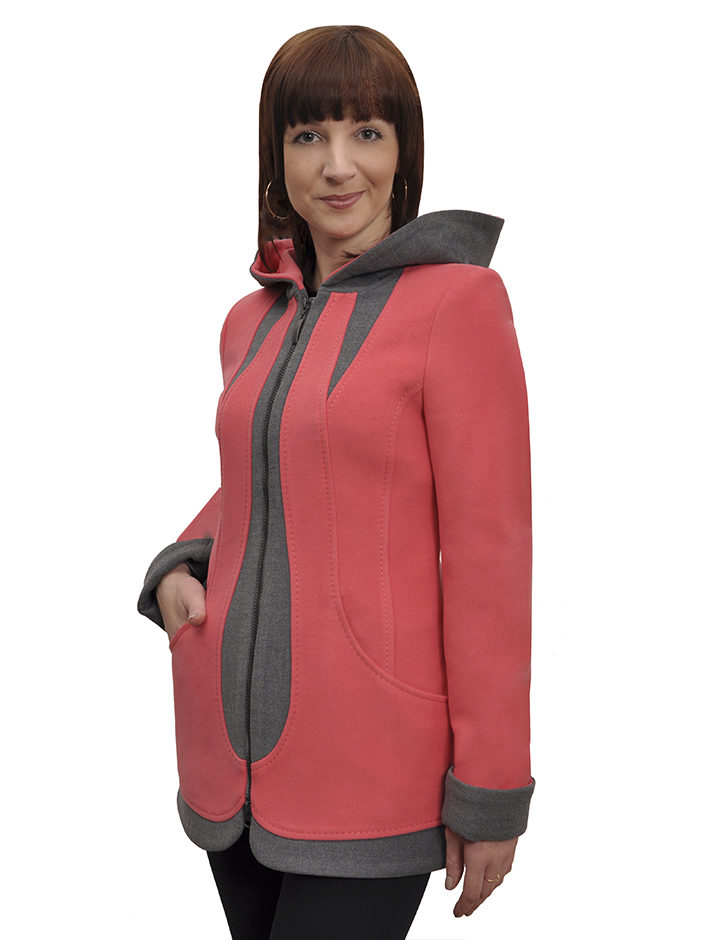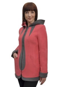 Interesting and coat, combined from one fabric in different colors - orange and black, gray and pink, dark red and fuchsia, brown and ocher.