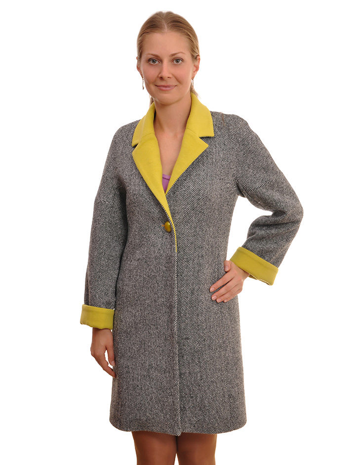 - trapezoid-shaped coat jacket for ladies of elegant age;