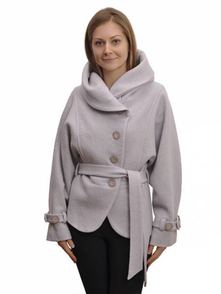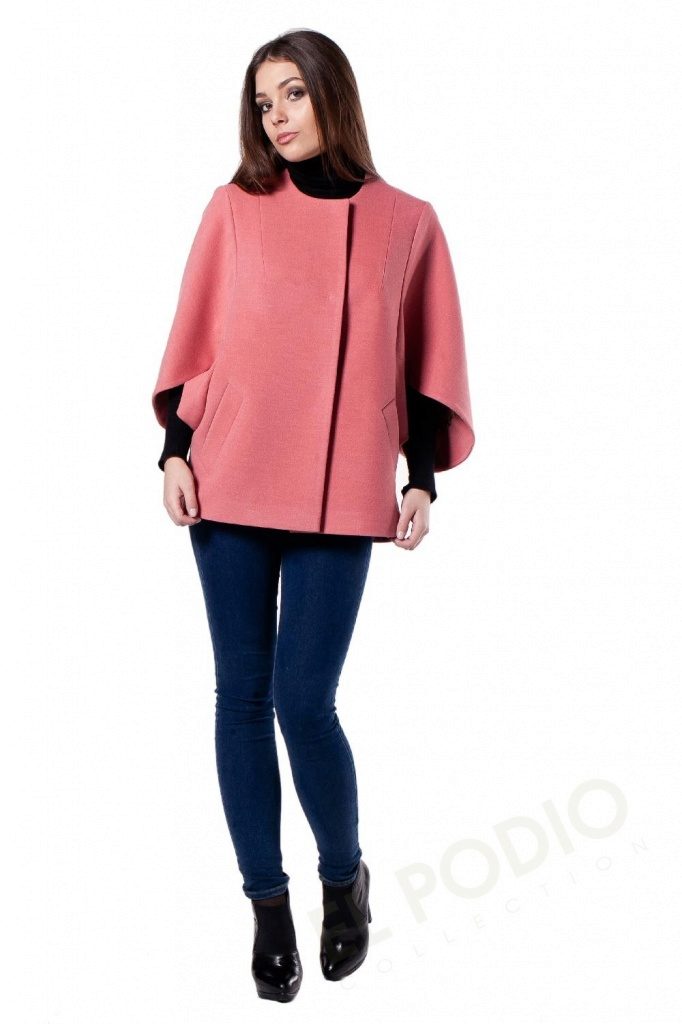 - stylish coat with short sleeves and stand-up collar;