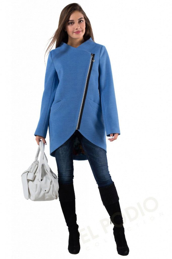 - stylish non-standard solution - asymmetrical loose coat with a zipper;