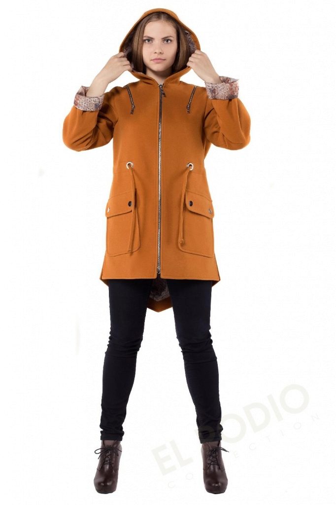 - coat parks with a hood, on the drawstring, trimmed with decorative zippers;