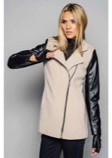 There are variants of double sleeves sewn together. The upper part is a wider element of one type of fabric, and the lower part is made in the form of a narrowed sleeve of a completely different fabric.