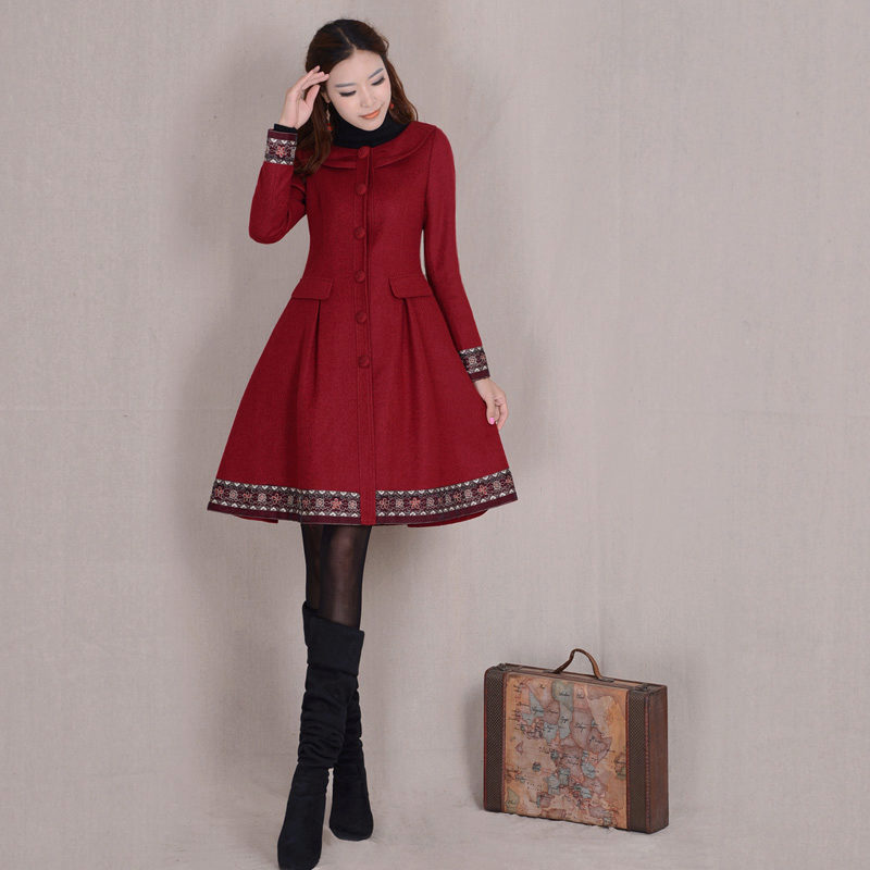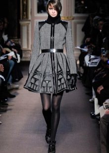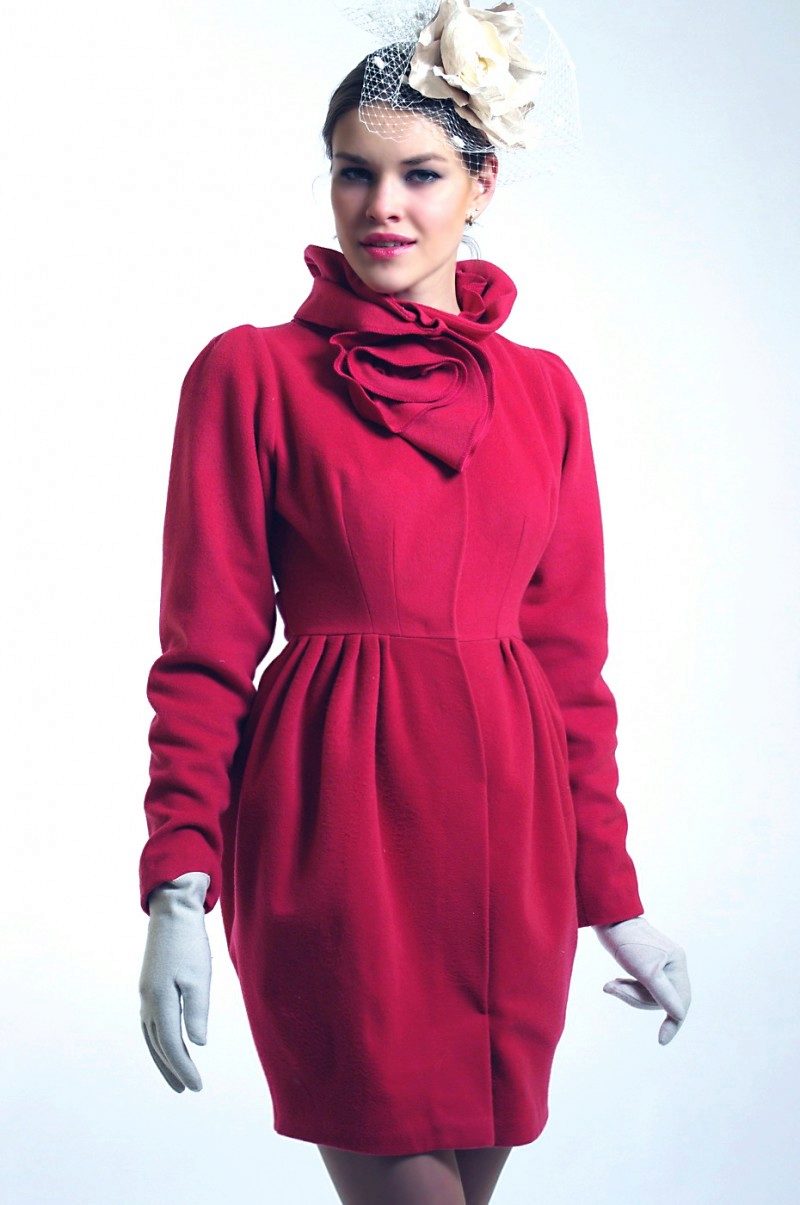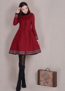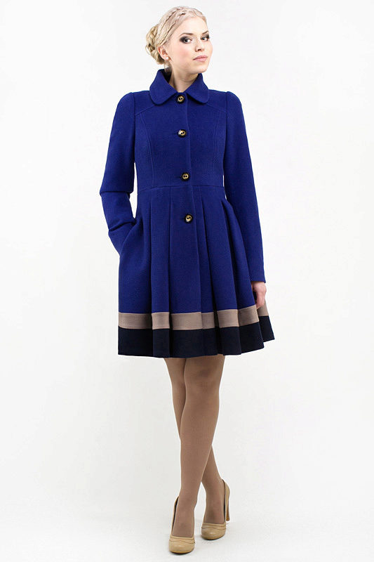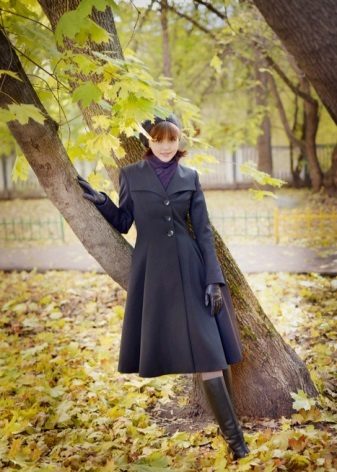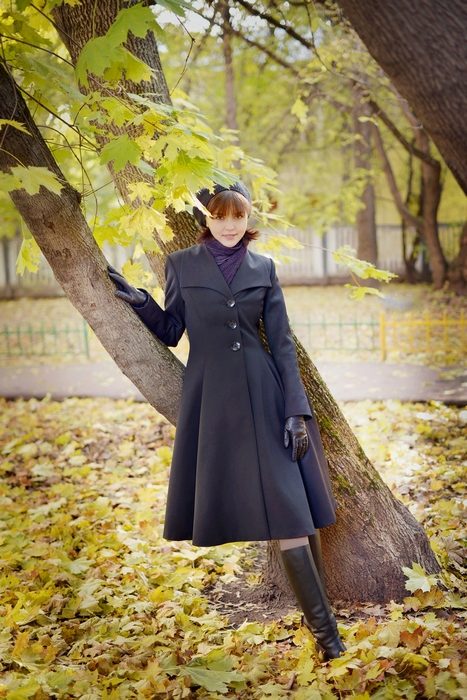 Coat in retro style has the appearance characteristic of the corresponding period. Flared lower part is made in the form of a fluffy skirt, which makes the product incredibly feminine, and the fitting top gives it restraint.