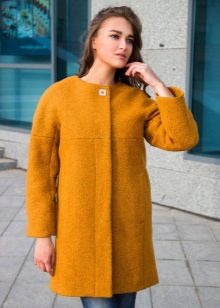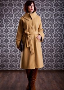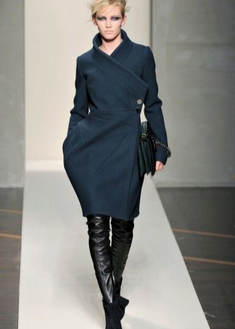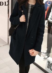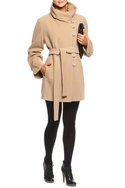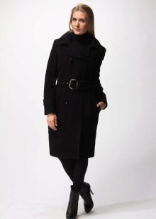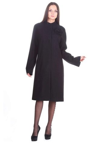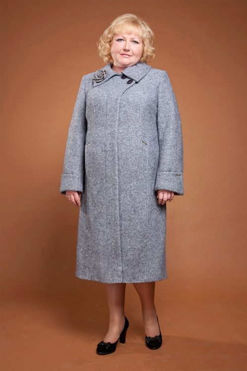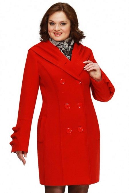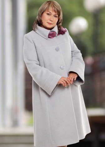 For women with a volumetric lower part, it is best to choose a model of a trapezoid cut coat, the lower part of which expands and visually conceals volumes. Such a model will not fit the lower body and unduly focus attention on the shortcomings.