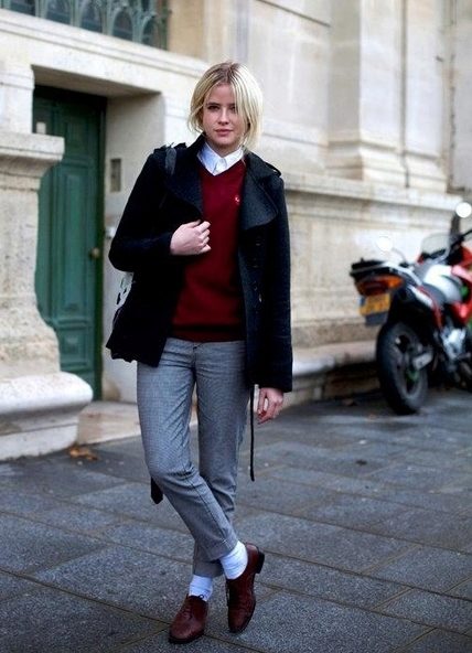 For example, short coats are popular with active girls who prefer a trouser bottom, since this is the most harmonious combination with comfortable shoes on a flat sole, some models of which are made in a sporty style.