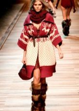 This “rustic” style is characterized by convenience and simplicity, not at all deprived of attractiveness. A coat of natural yarn in natural shades - brown, red, white, gray, will give you not only comfort, but will also bring a drop of the Wild West to your image.