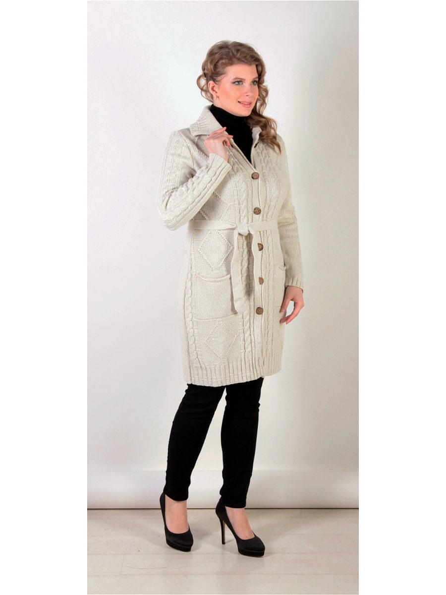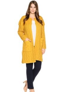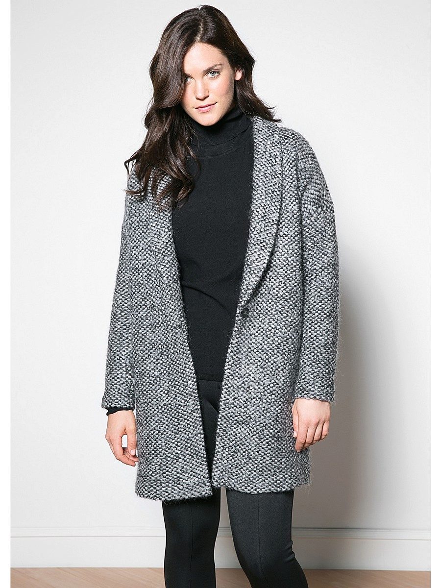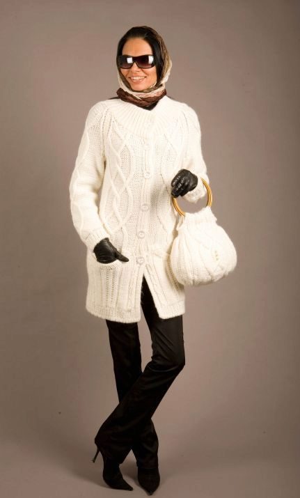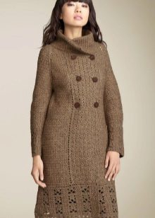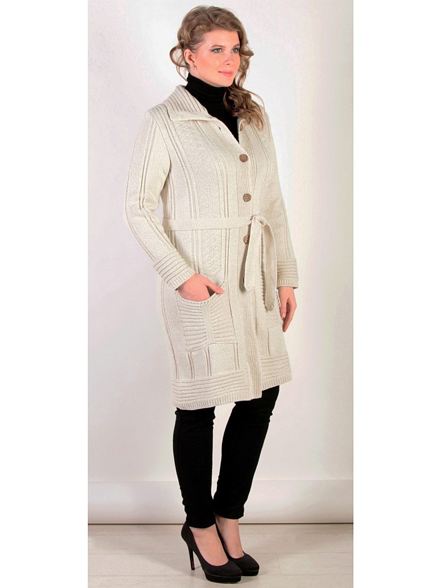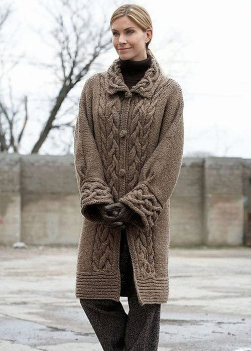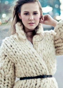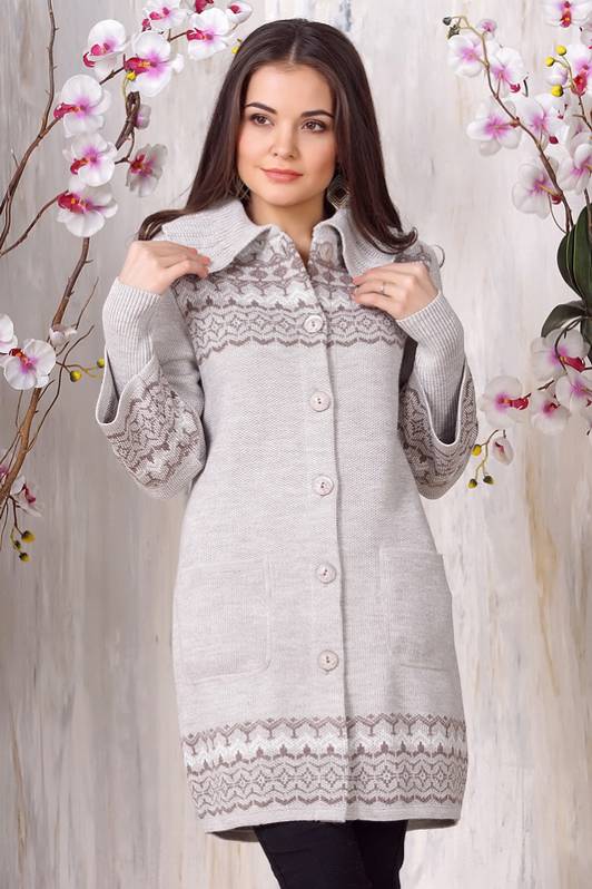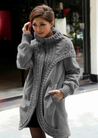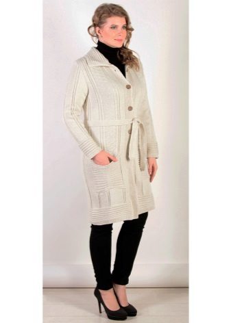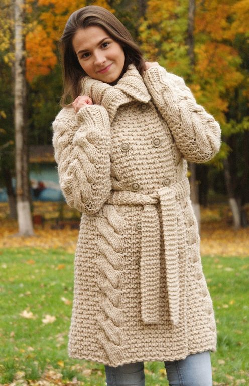 The height and volume of the collar of the product should be determined on the basis of the height of the neck and its volume, since, on the one hand, a very large and high collar will hide its fullness, but, on the other, it can leave you without a neck. For a woman with a non-standard figure, flared and loose sleeves of a knitted coat will also create comfortable conditions.