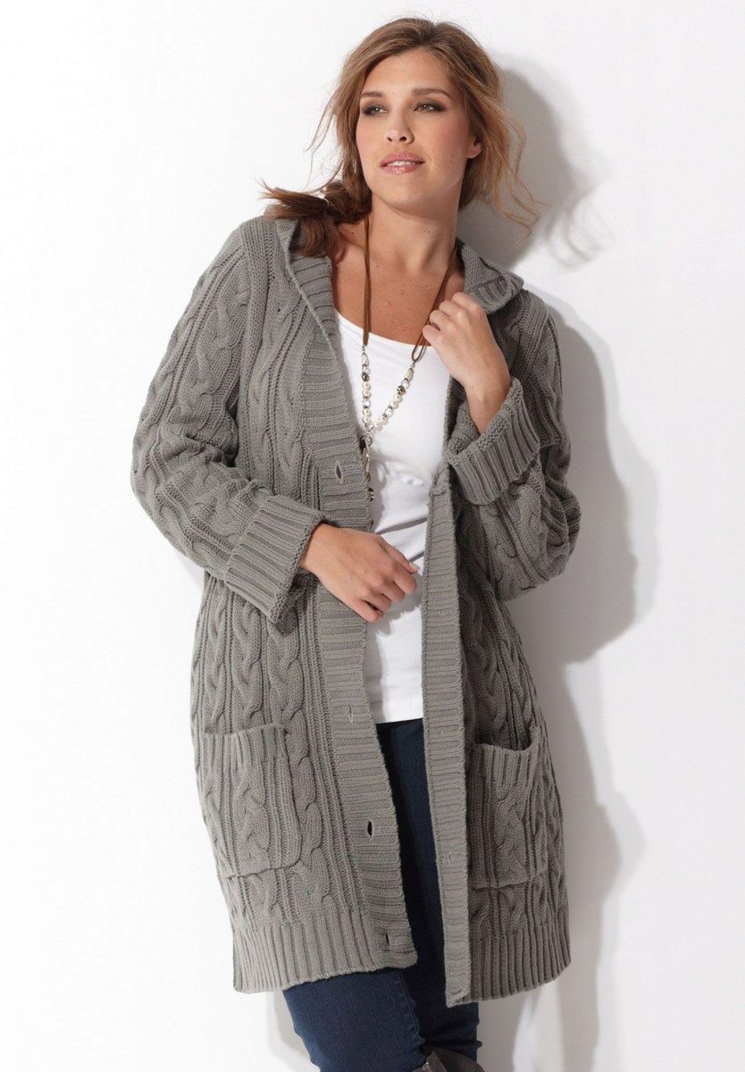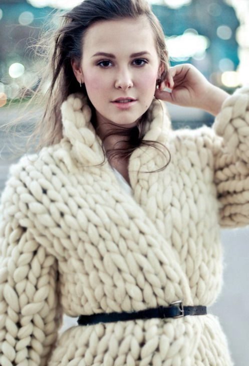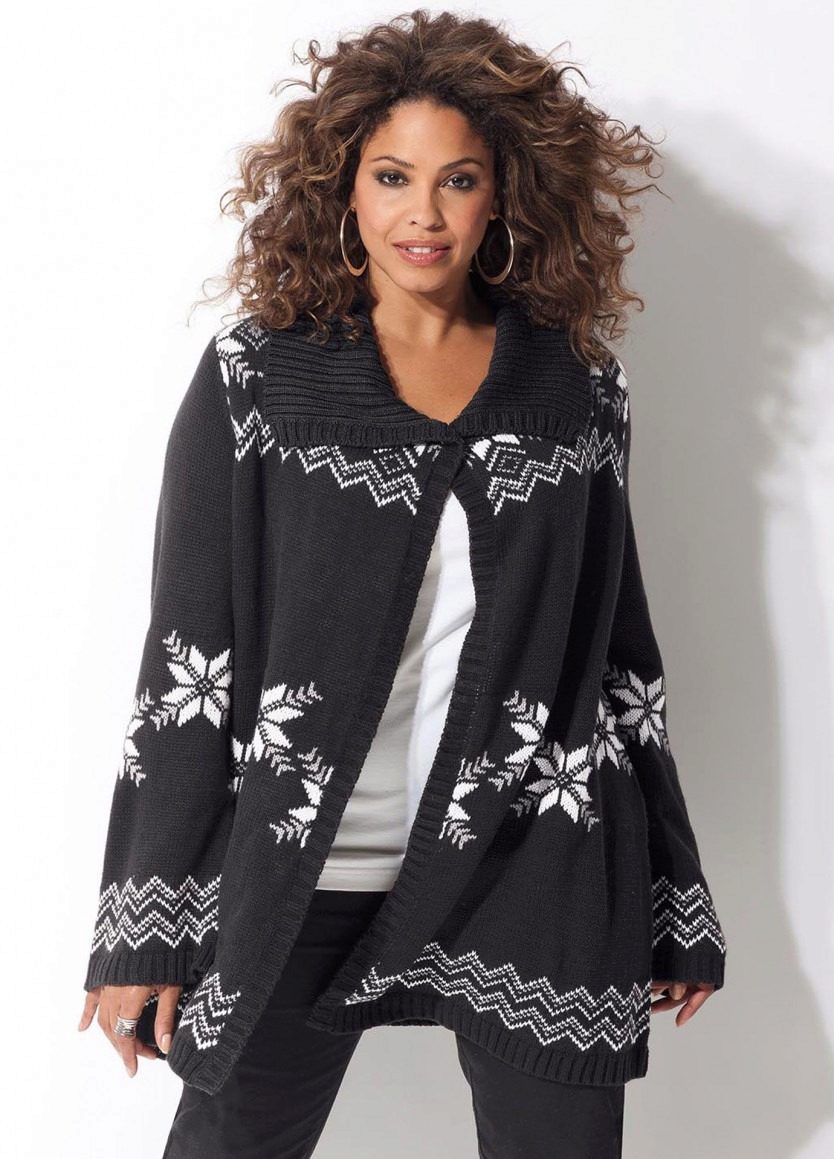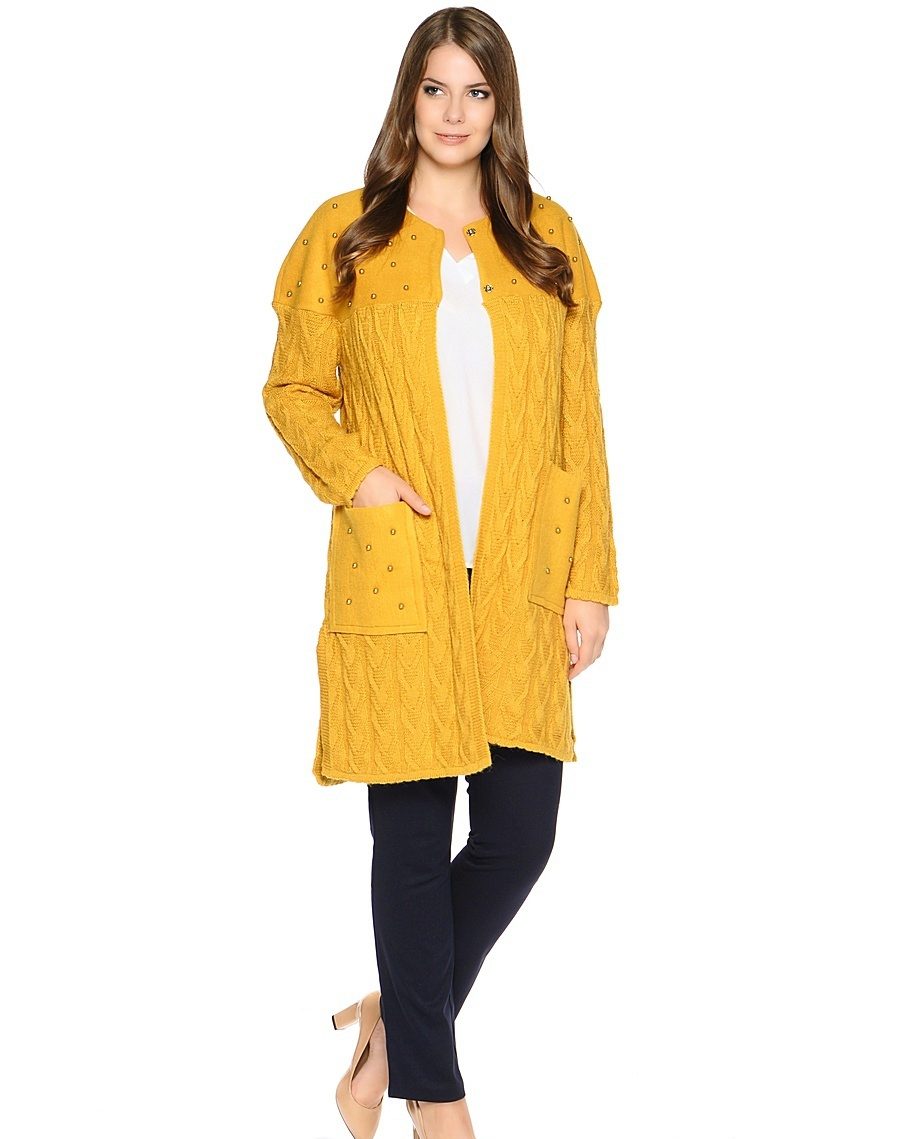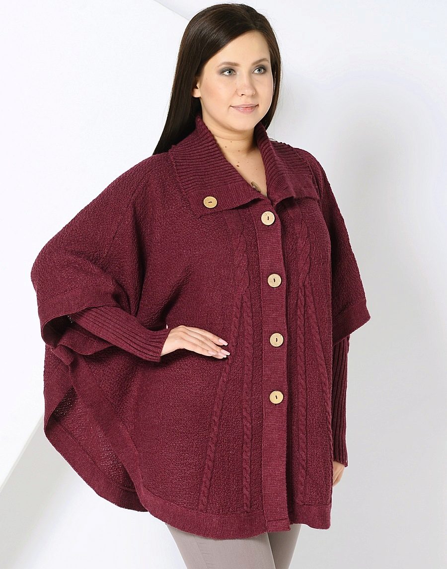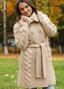 The height and volume of the collar of the product should be determined on the basis of the height of the neck and its volume, since, on the one hand, a very large and high collar will hide its fullness, but, on the other, it can leave you without a neck. For a woman with a non-standard figure, flared and loose sleeves of a knitted coat will also create comfortable conditions.