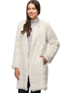 Separate conversation deserves knitted fur coat. The technique of knitting such products is quite complicated, but the amazing result is worth it. Fur skins are cut into the thinnest stripes, twisted and twisted around the warp. Very light, plastic and elegant coats can satisfy the most captious fashionista.