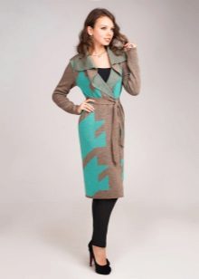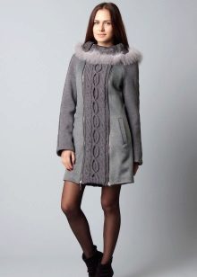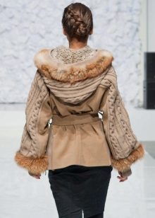 The coat does not have to be fully tied. The combination of fabric and knitted linen itself is very beautiful. The combined models look interesting and unbleached: a leather coat with a knitted collar and knitted sleeves, and the collar can also consist of two parts - the inner one from the top fabric, the outer one - knitted.