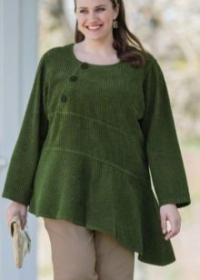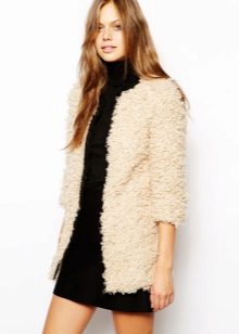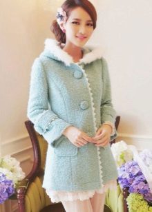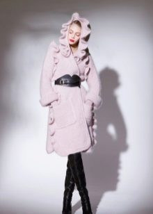 A woman who, as she believes, has a full waist and large hips, should pay attention to the shortened coat, the hem of which is decorated with tassels that draws the silhouette and makes it more slender. An asymmetrical coat, in which fullness is concealed due to the fact that one shelf comes to another, will be an interesting and not boring decision.