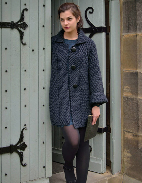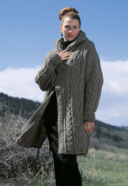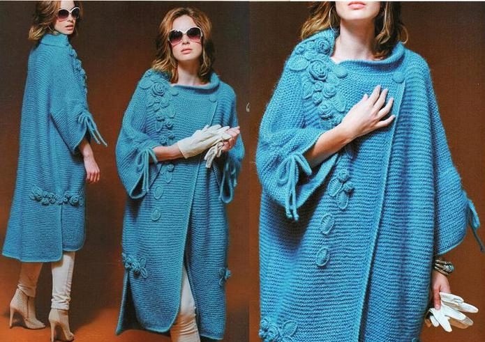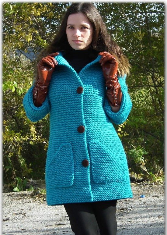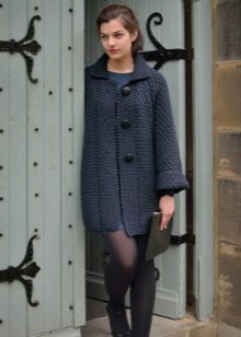 Coats can be knitted with motifs or straight weave using very different types of patterns. The simplest of them (it does not mean uninteresting or irrelevant at all) is the facial smoothness and shawl. Available for both manual and machine knitting, very good for coarse knitting coats, when attention is focused on the yarn itself.