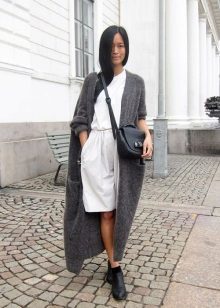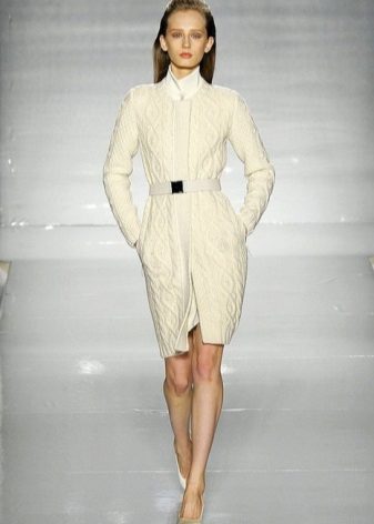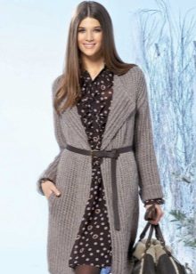Classic colors (elegant beige, neutral gray, strict black) are out of fashion, which makes it easy to combine a knitted coat of such tones even with a strict business suit. To the place will also be coffee or ink shades, relevant, according to the designers, this season.