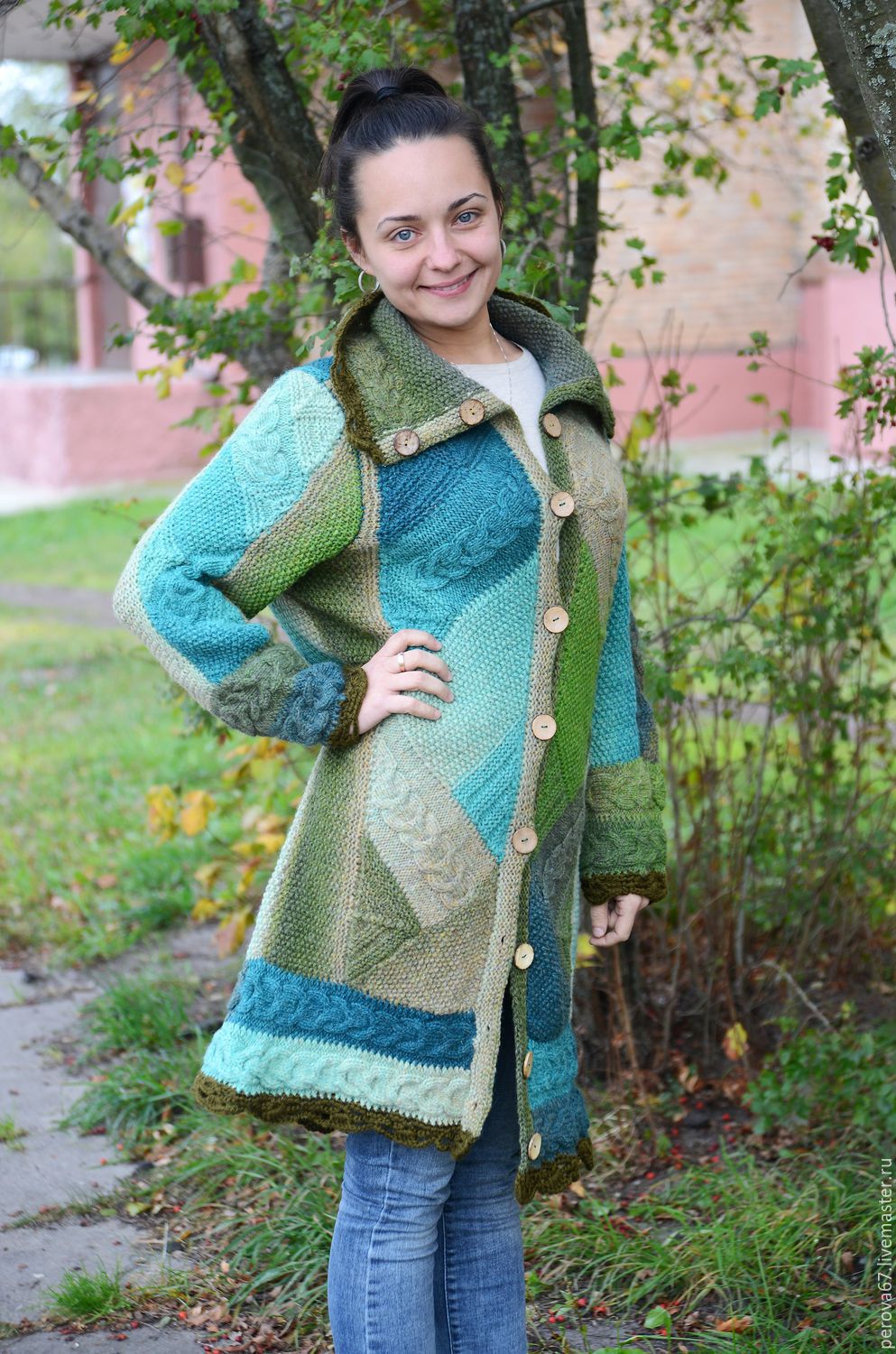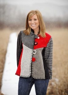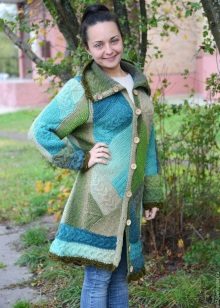 Coat, knitted using quilting technique. The initial goal of any patchwork is not necessarily pursued - the economical use of fabric or, in this case, yarn, but in case you knit the coat yourself from the remnants of colored threads, achieving this goal will be a pleasant bonus. If the task is not to save money, but simply to create an original thing, then the fans of the “crazy patchwork” style will gladly accept you into their ranks and share a lot of new ideas.