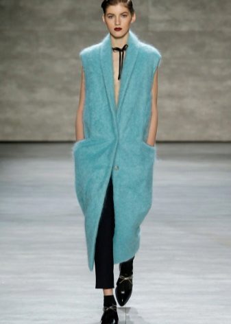 - Knitted coat without sleeves. The sleeveless version is not too widespread due to the climatic peculiarities in our country, but it has a place to be and is especially appreciated by autolady.